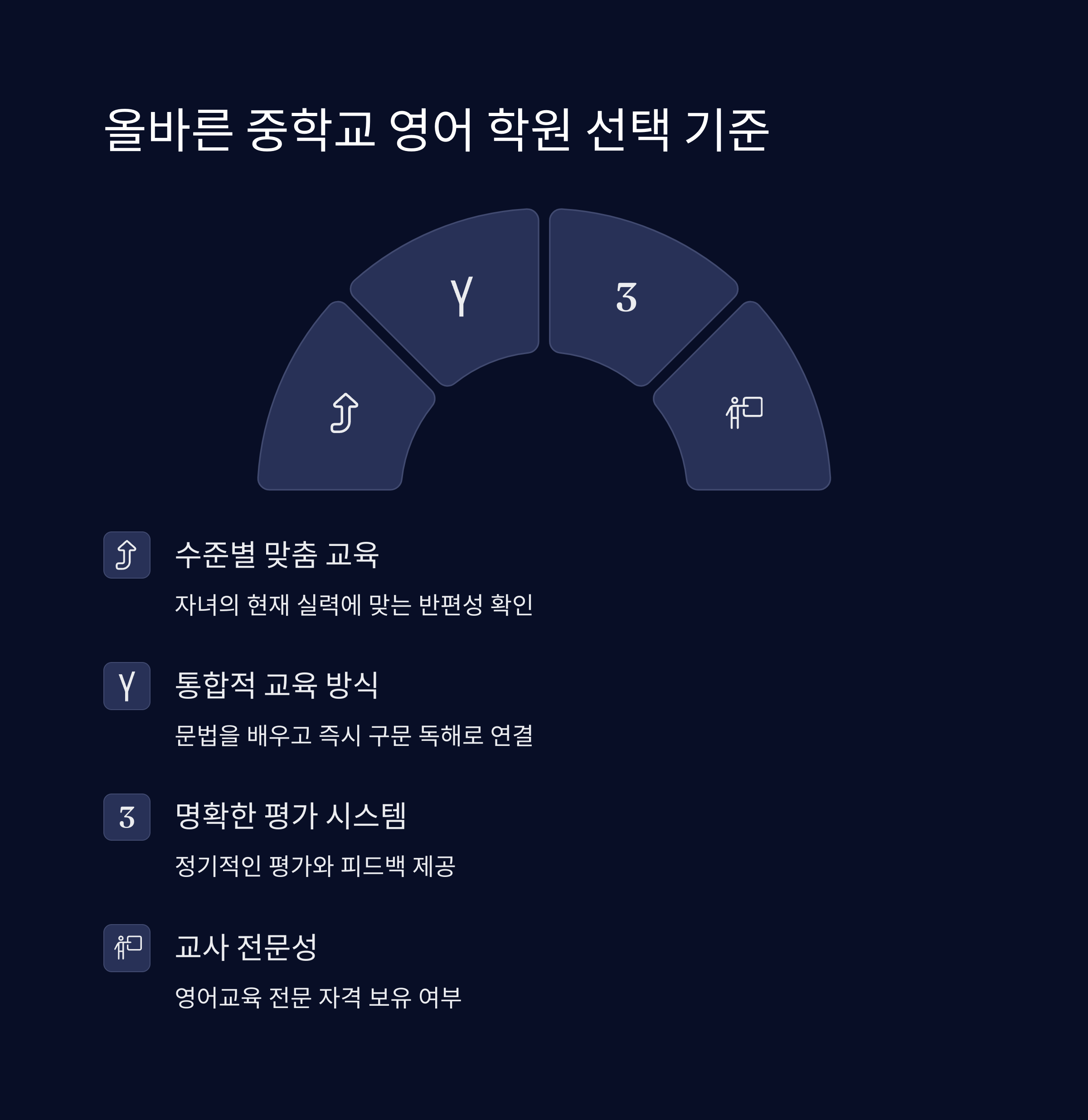 무엇보다 중학교 영어 학원 선택은 아이의 평생 영어 실력을 좌우하는 중요한 결정임을 기억하시기 바랍니다.