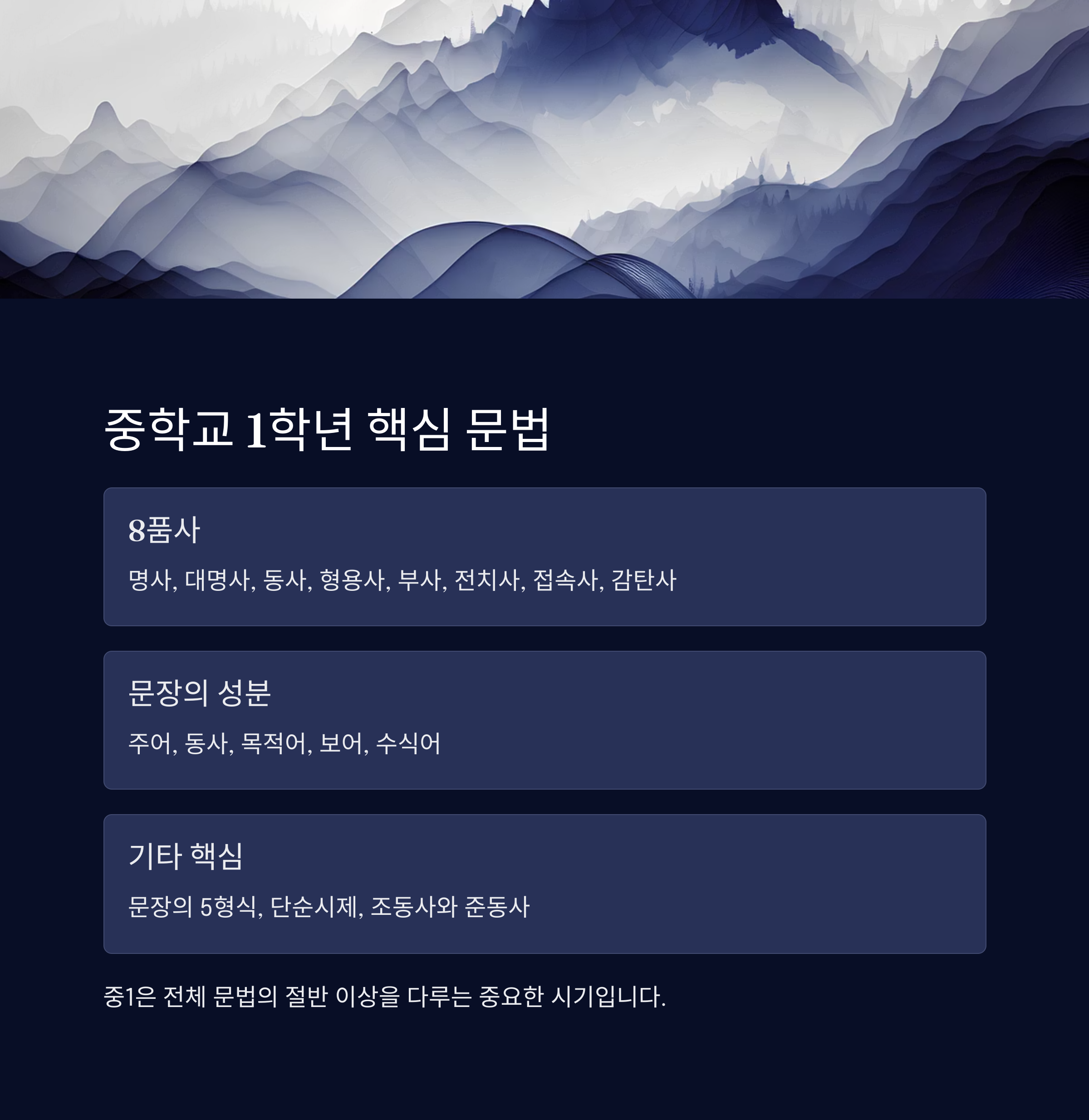 특히 중학교 1학년은 전체 문법의 절반 이상을 다루는 중요한 시기입니다.