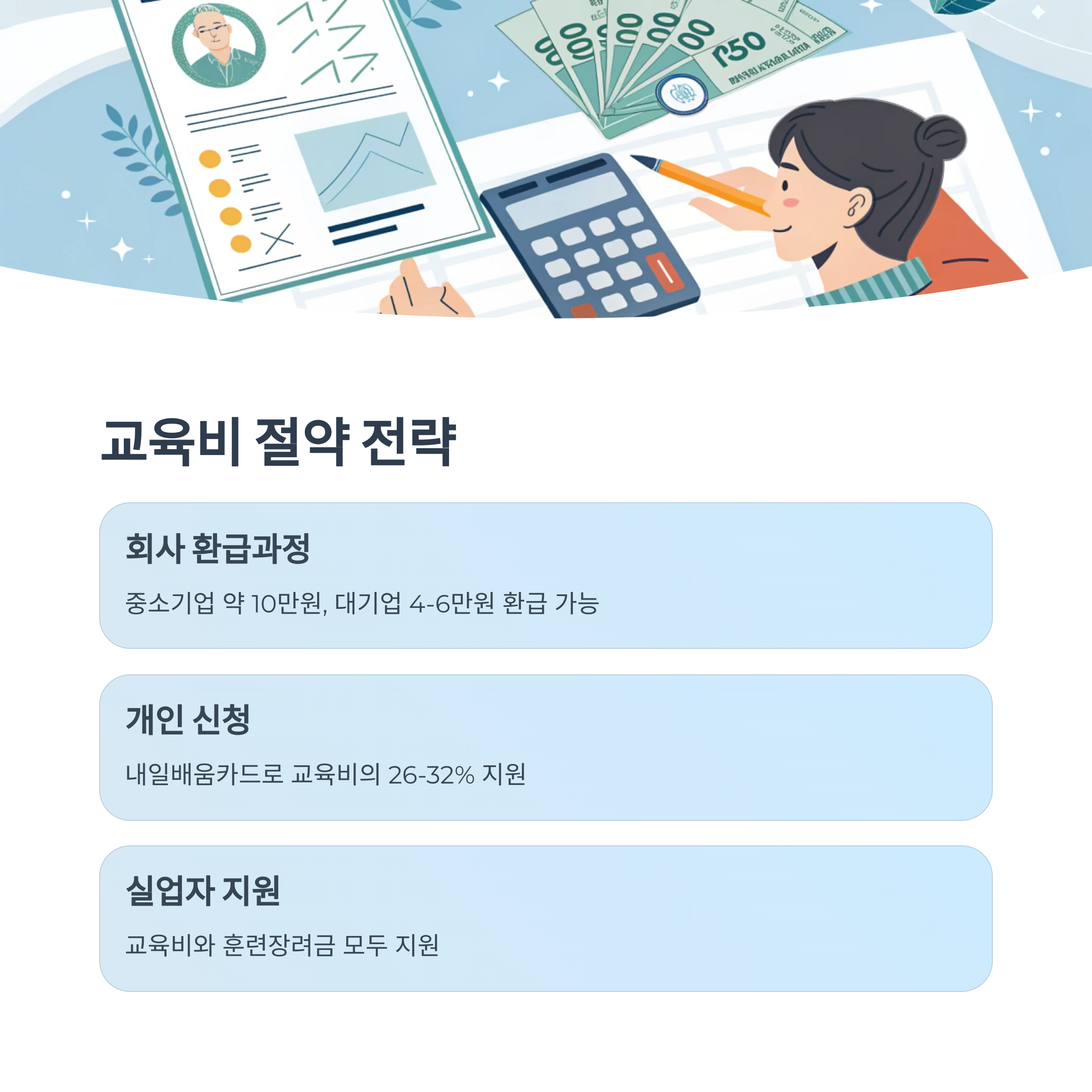 A2: 일반 교육비 30-40만원에서 국비지원 후 본인부담금은 10-15만원 정도로, 약 60-70% 절약 가능합니다.