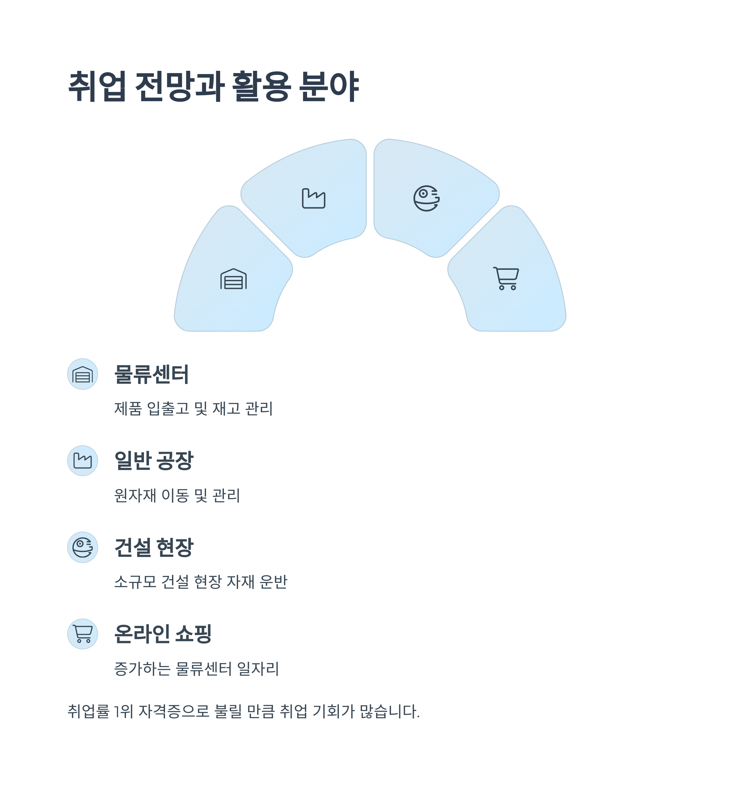 A5: 물류센터, 공장, 소규모 건설현장 등 다양한 분야에서 활용할 수 있으며, 취업률이 매우 높은 자격증입니다.