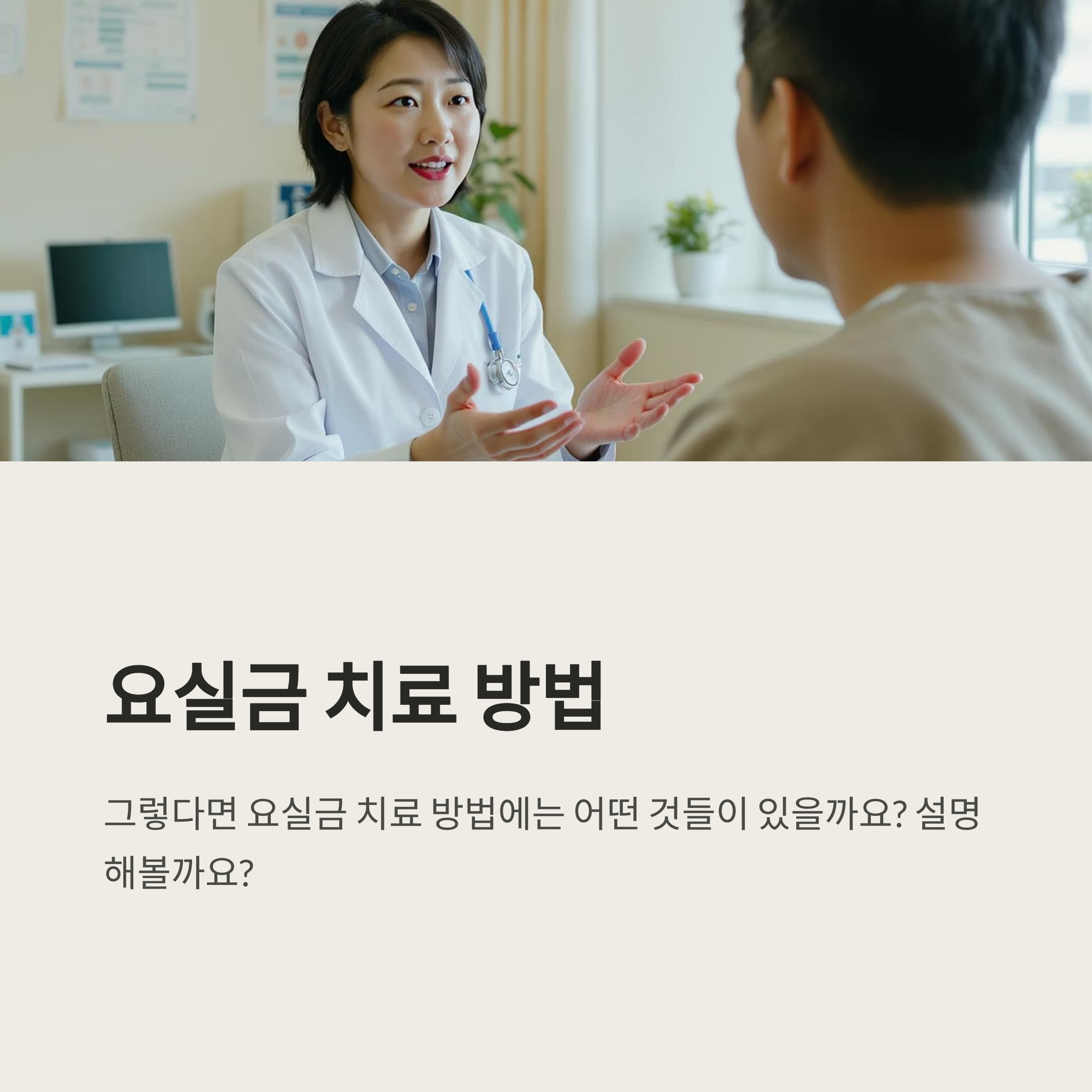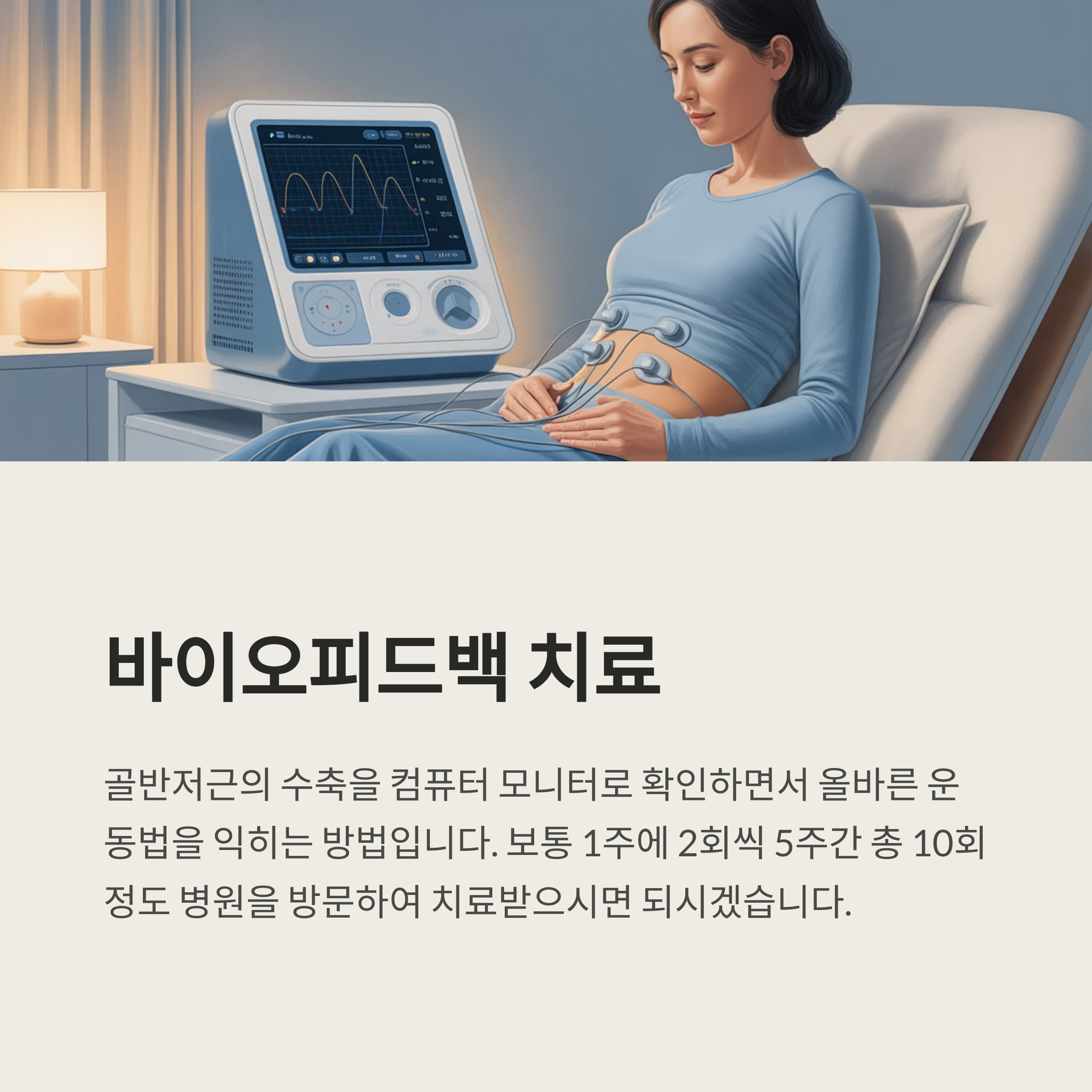 - 비수술적 치료(골반근육 운동, 약물 치료)가 우선적으로 시행됩니다