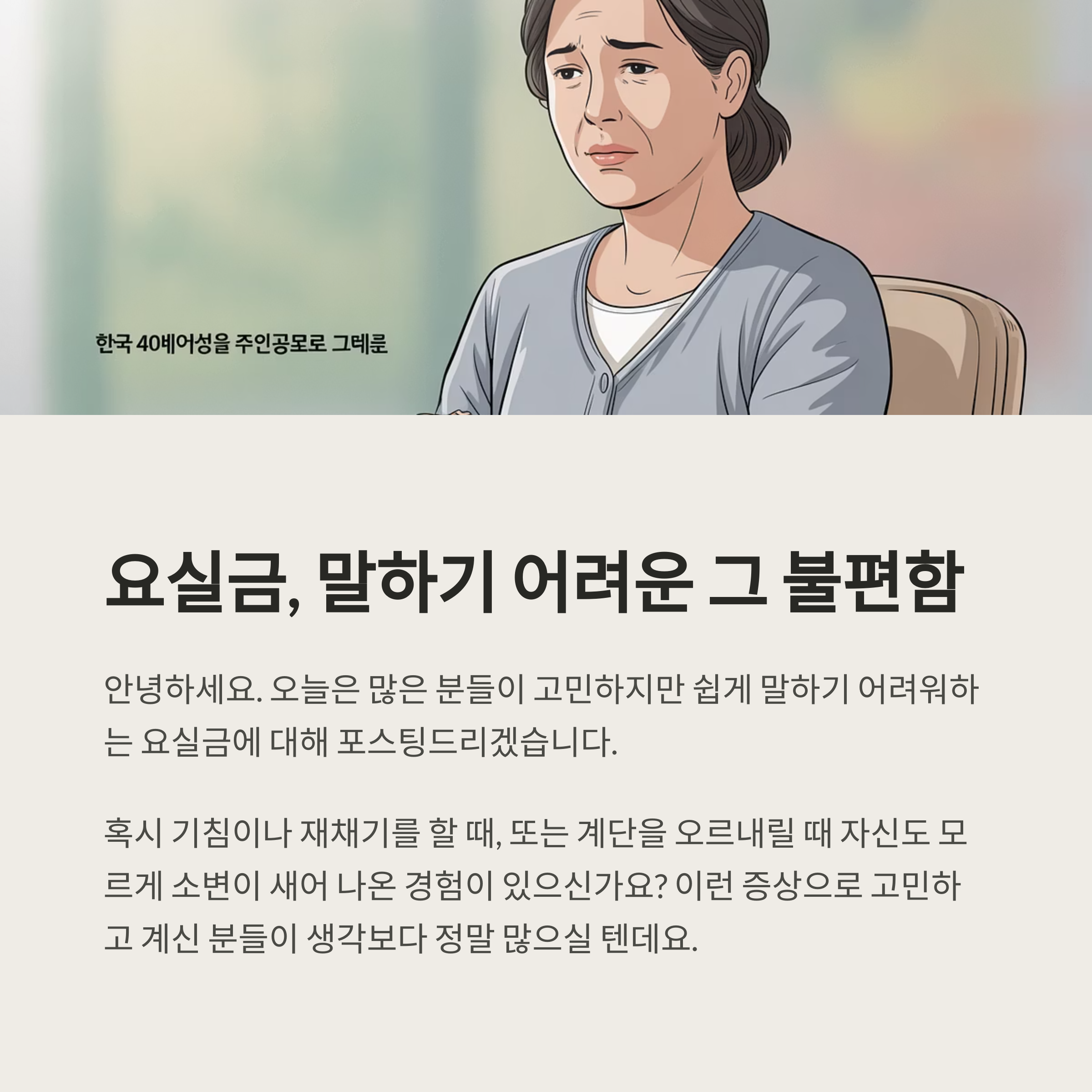 혹시 기침이나 재채기를 할 때, 또는 계단을 오르내릴 때 자신도 모르게 소변이 새어 나온 경험이 있으신가요? 이런 증상으로 고민하고 계신 분들이 생각보다 정말 많으실 텐데요.