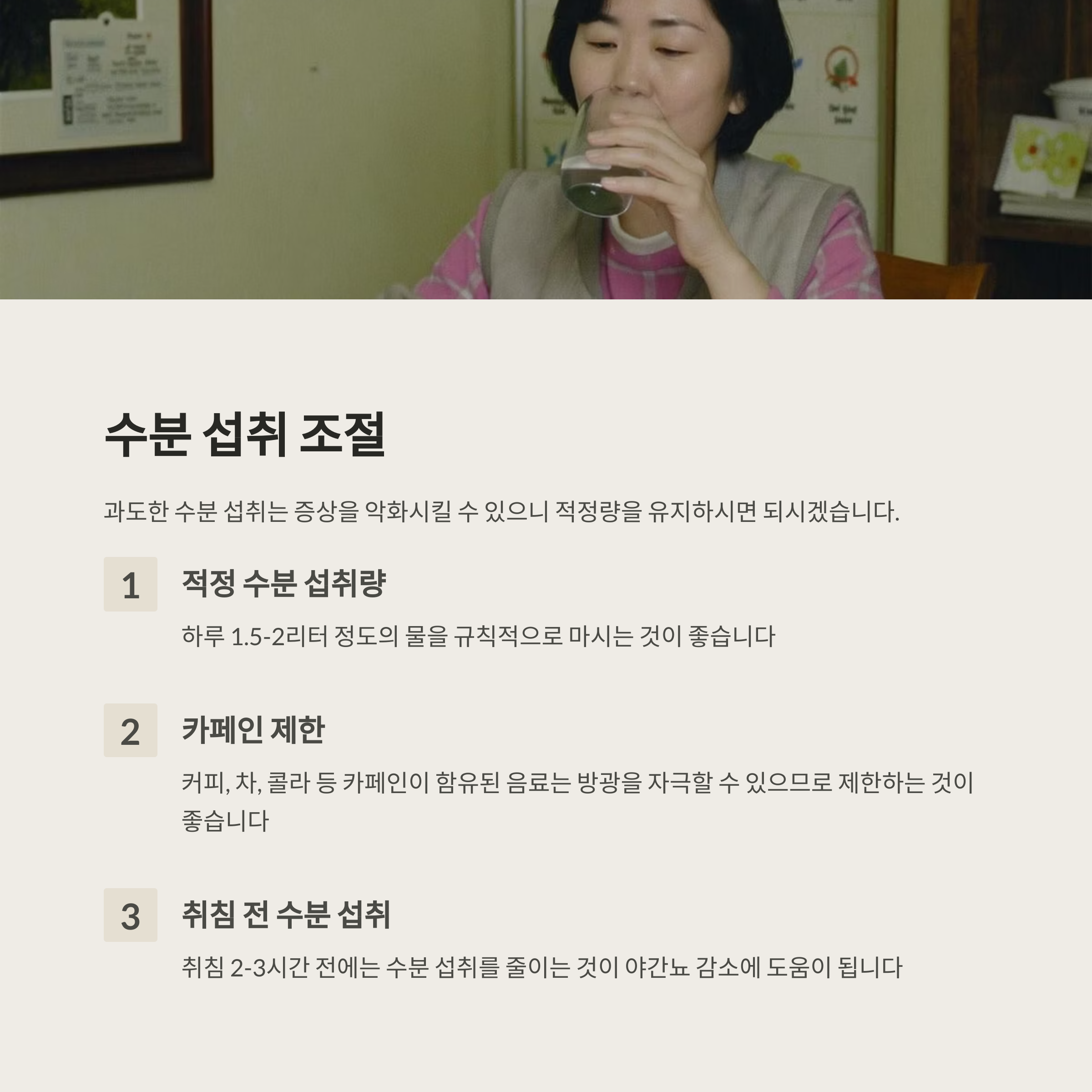 과도한 수분 섭취는 증상을 악화시킬 수 있으니 적정량을 유지하시면 되시겠습니다.