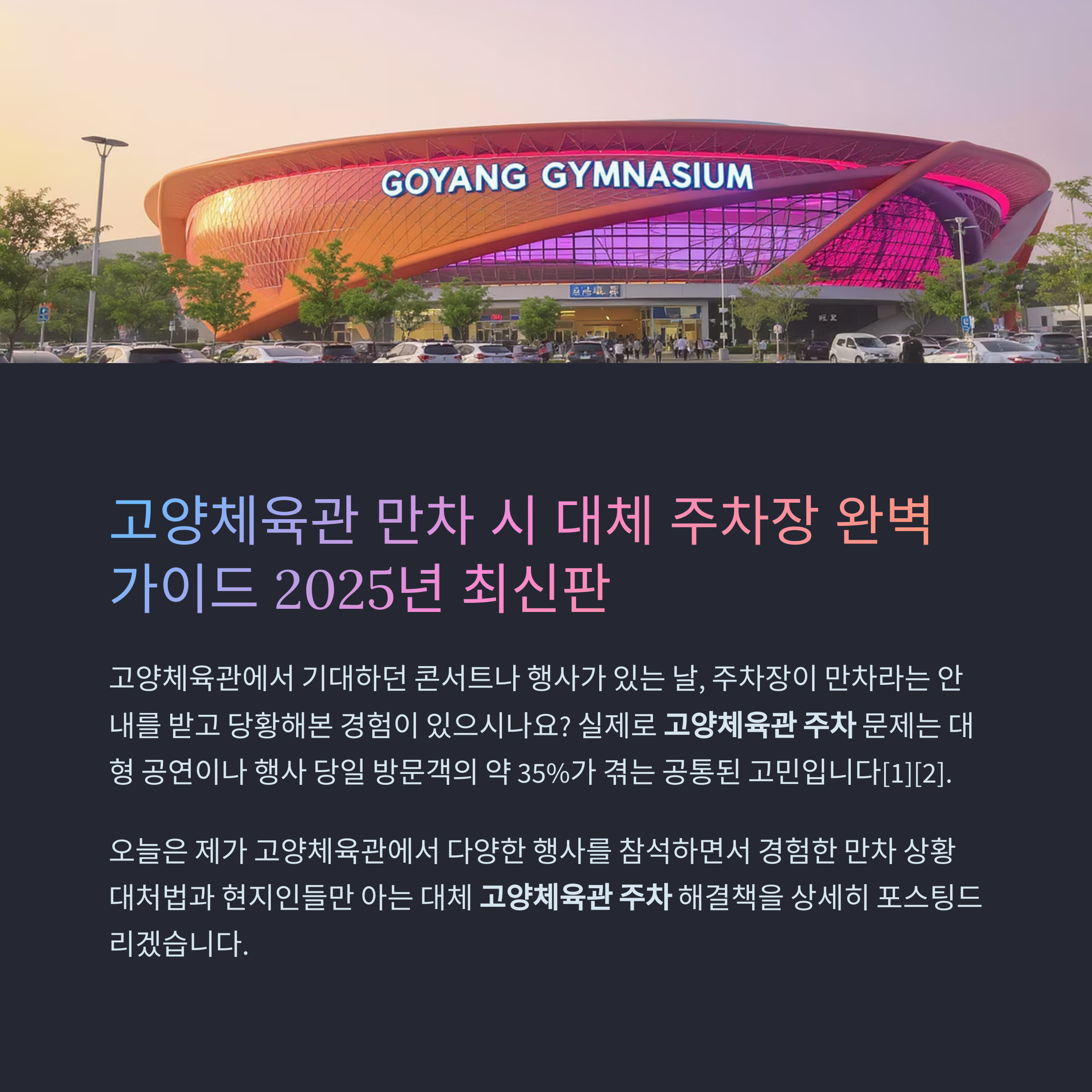 고양체육관에서 기대하던 콘서트나 행사가 있는 날, 주차장이 만차라는 안내를 받고 당황해본 경험이 있으시나요? 실제로 고양체육관 주차 문제는 대형 공연이나 행사 당일 방문객의 약 35%가 겪는 공통된 고민입니다.