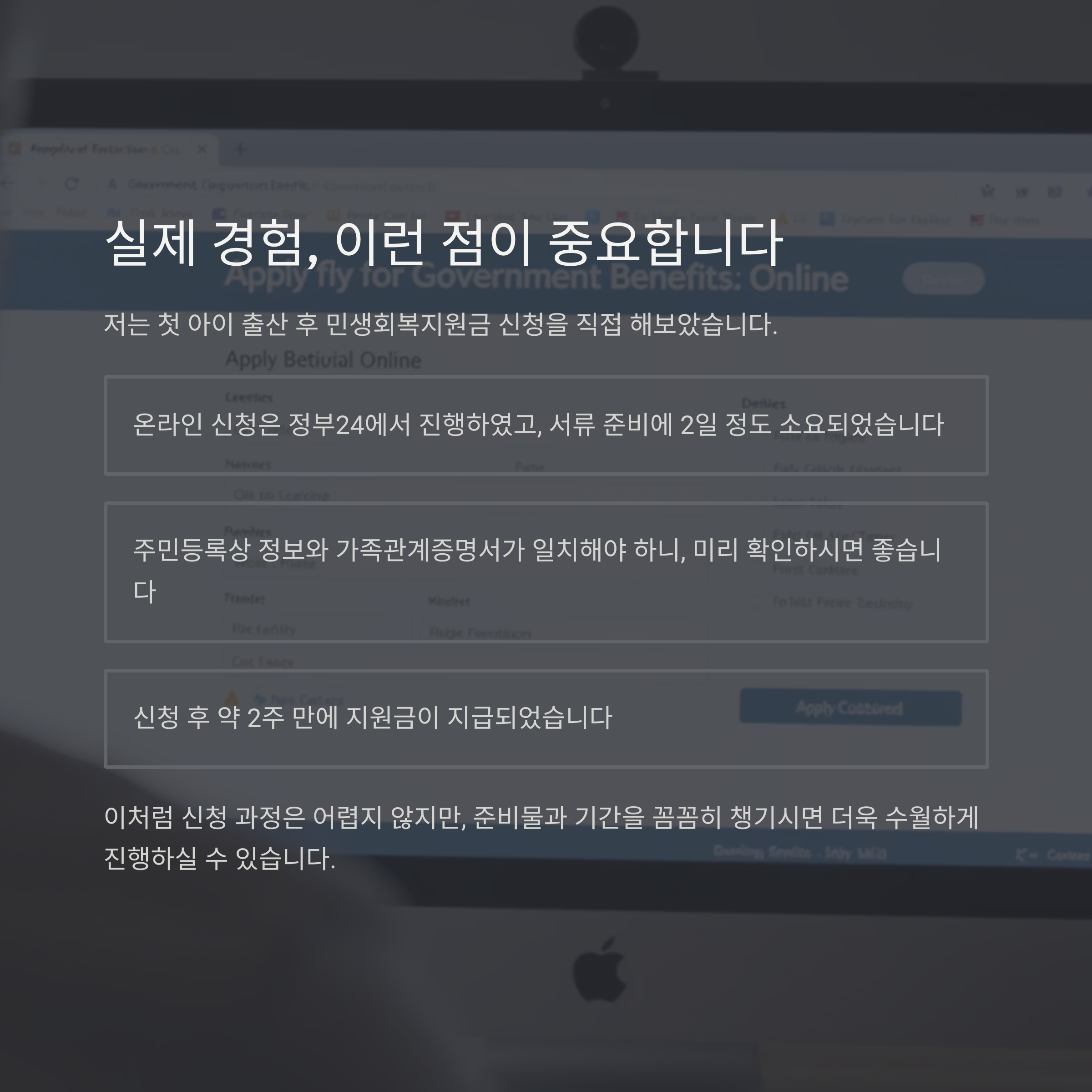 - 온라인 신청은 정부24에서 진행하였고, 서류 준비에 2일 정도 소요되었습니다