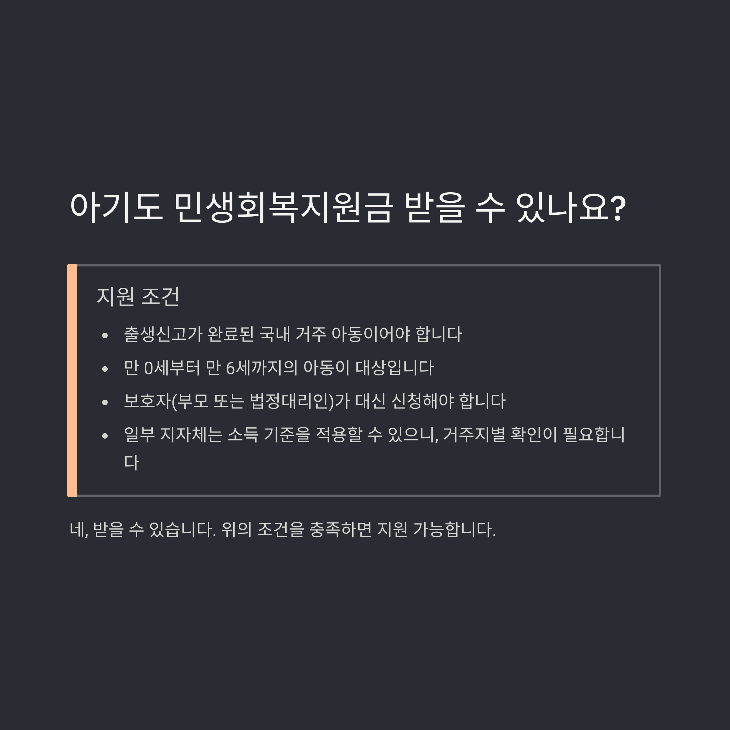 - 일부 지자체는 소득 기준을 적용할 수 있으니, 거주지별 확인이 필요합니다