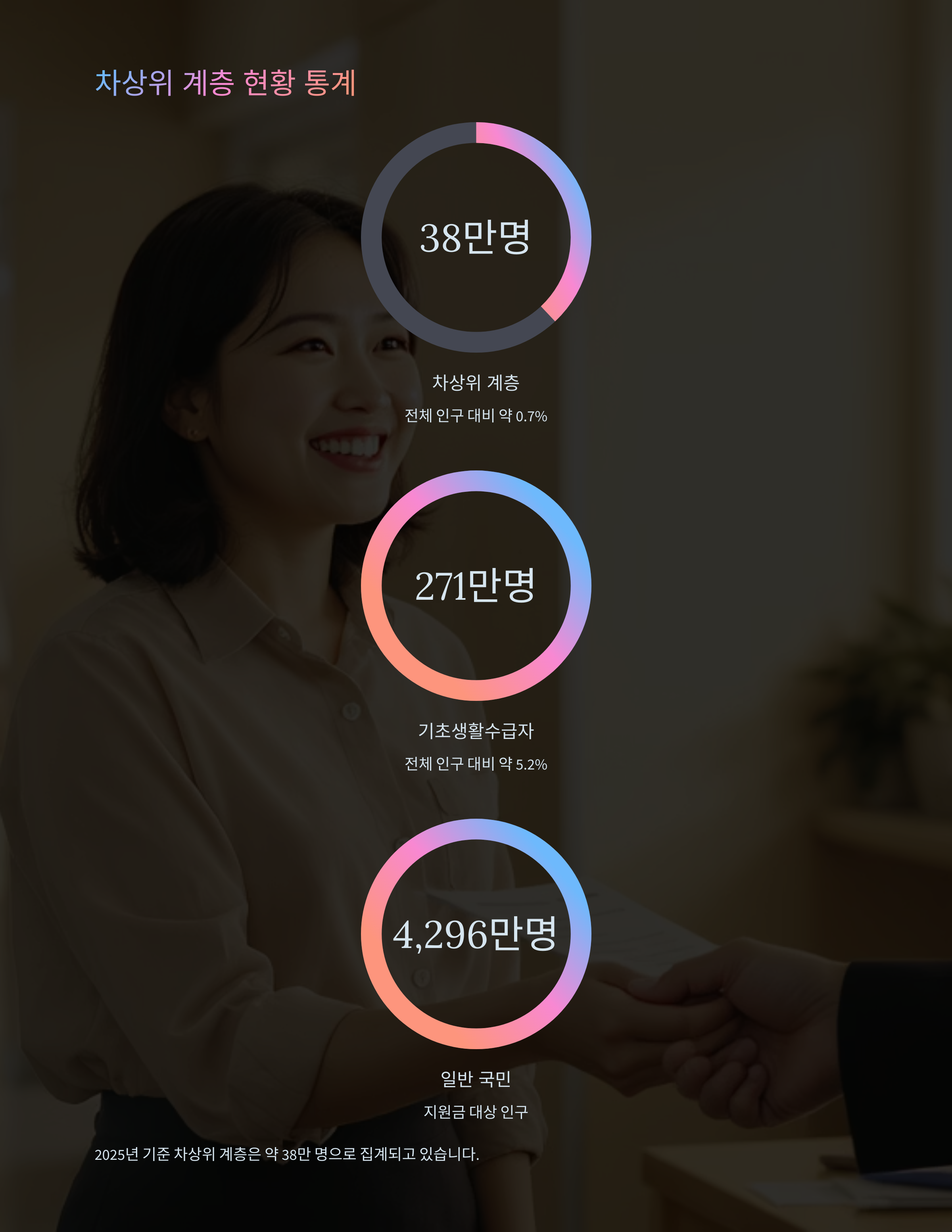 - 차상위 계층은 전체 인구 대비 약 0.7%를 차지합니다.