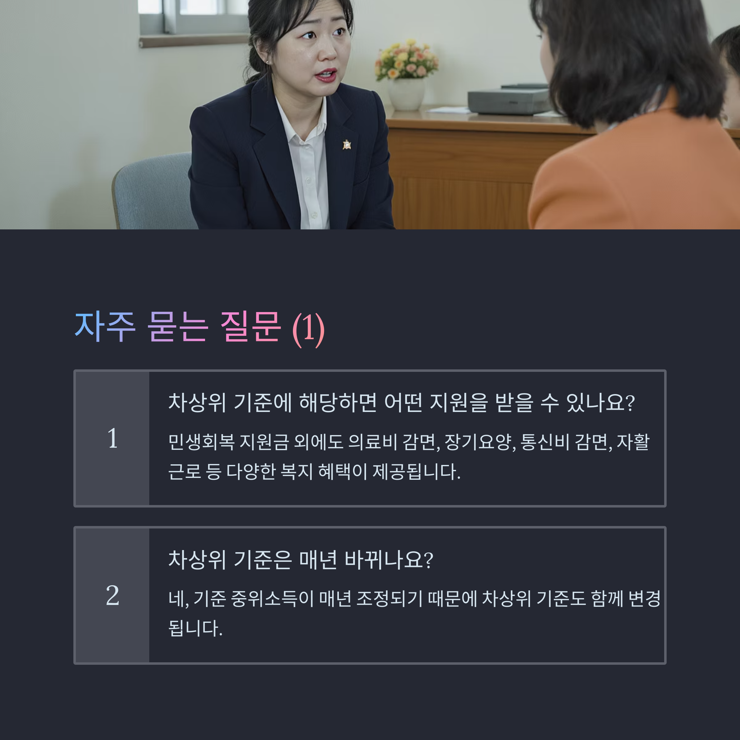 Q. 차상위 기준에 해당하면 어떤 지원을 받을 수 있나요?