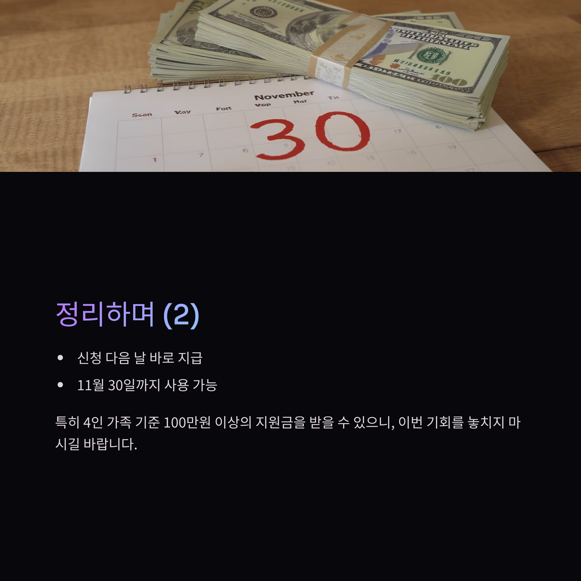 특히 4인 가족 기준 100만원 이상의 지원금을 받을 수 있으니, 이번 기회를 놓치지 마시길 바랍니다.