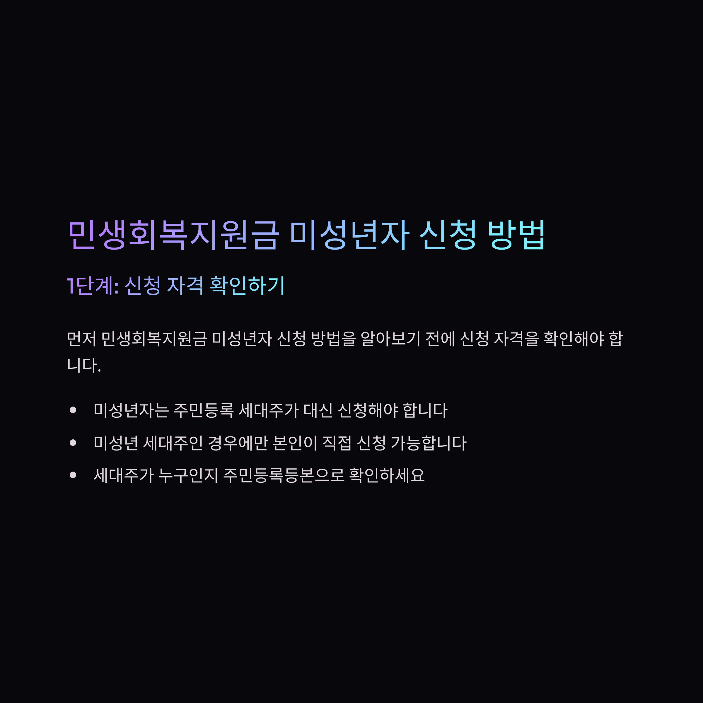 - 미성년자는 주민등록 세대주가 대신 신청해야 합니다
