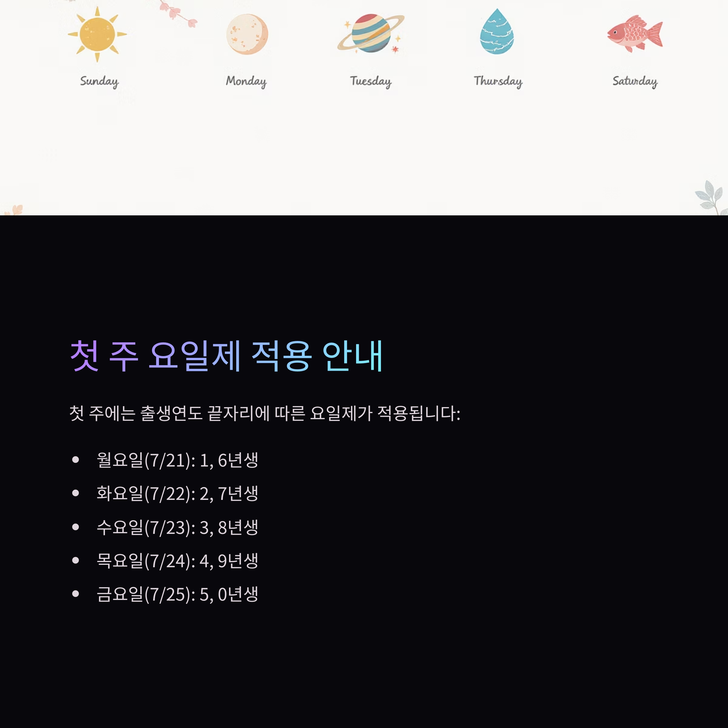 | 1차 신청 | 2025년 7월 21일 ~ 9월 12일 | 첫 주 요일제 적용 |