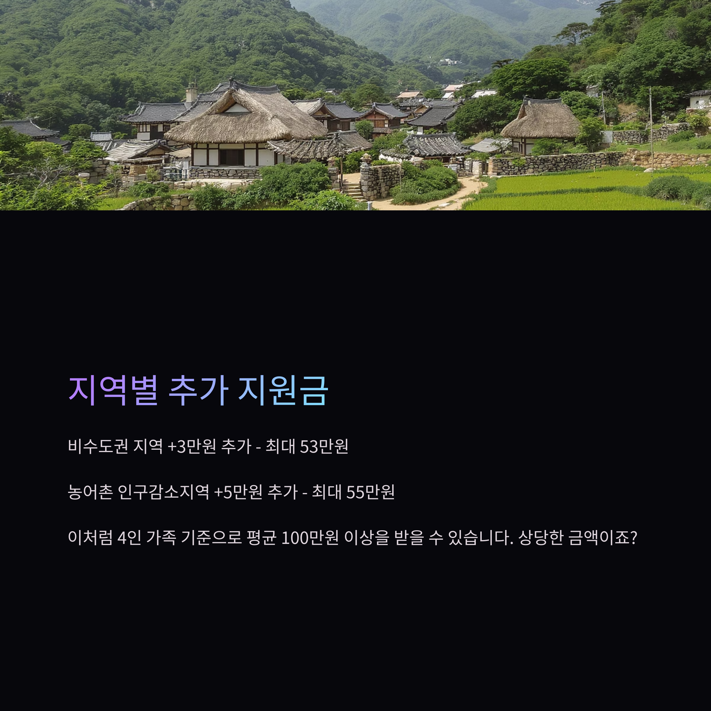 | 농어촌 인구감소지역 | +5만원 추가 | - | 최대 55만원 |