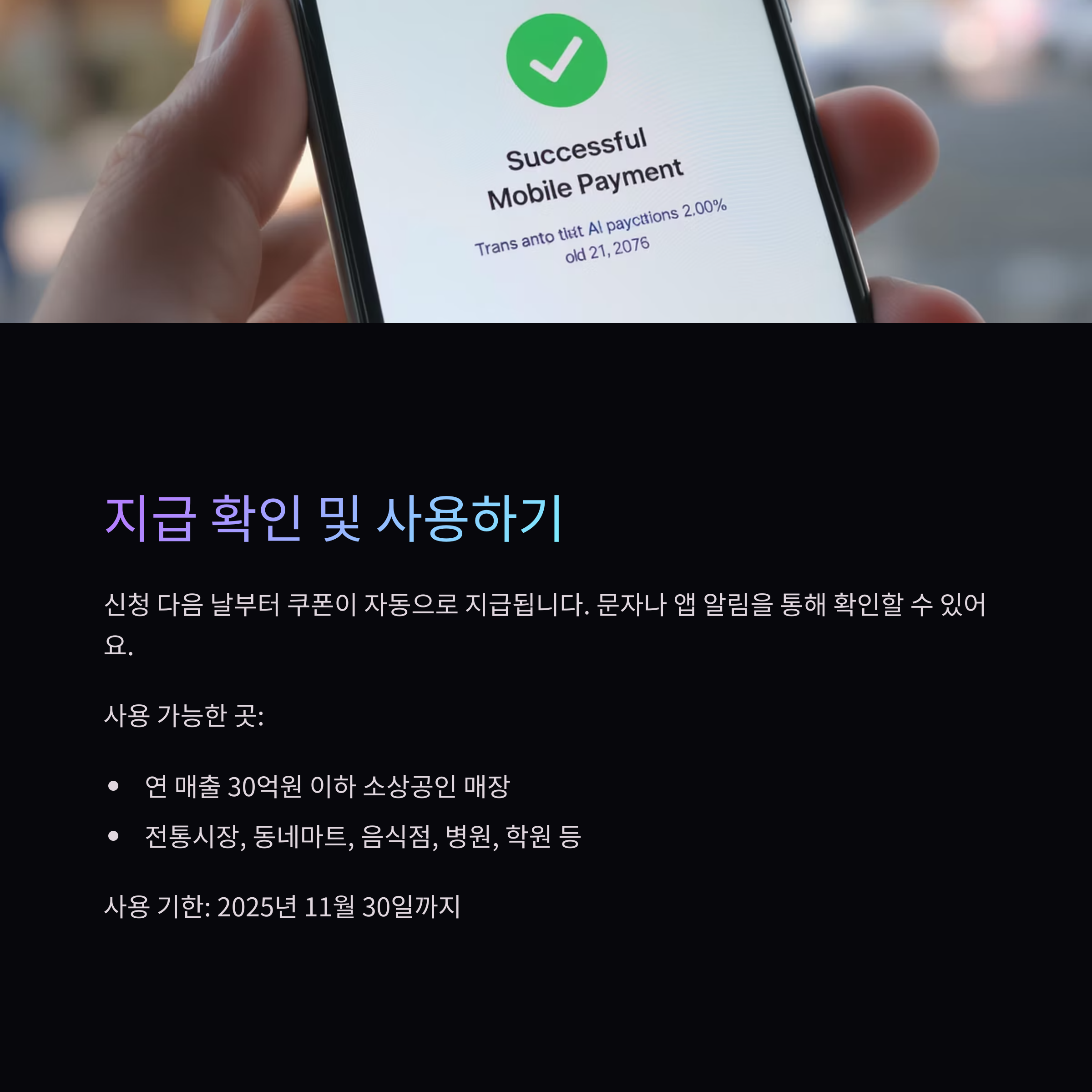 신청 다음 날부터 쿠폰이 자동으로 지급됩니다. 문자나 앱 알림을 통해 확인할 수 있어요.