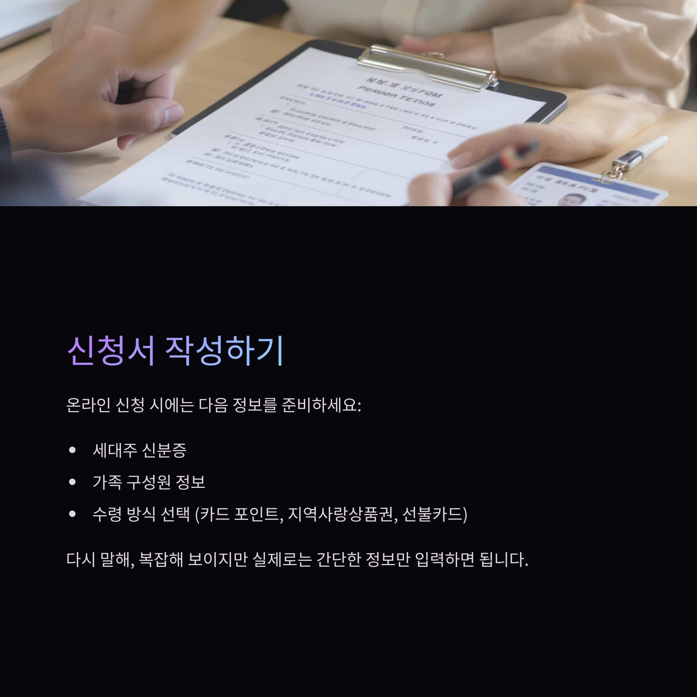 - 신청 주체 확인: 반드시 세대주가 신청해야 합니다