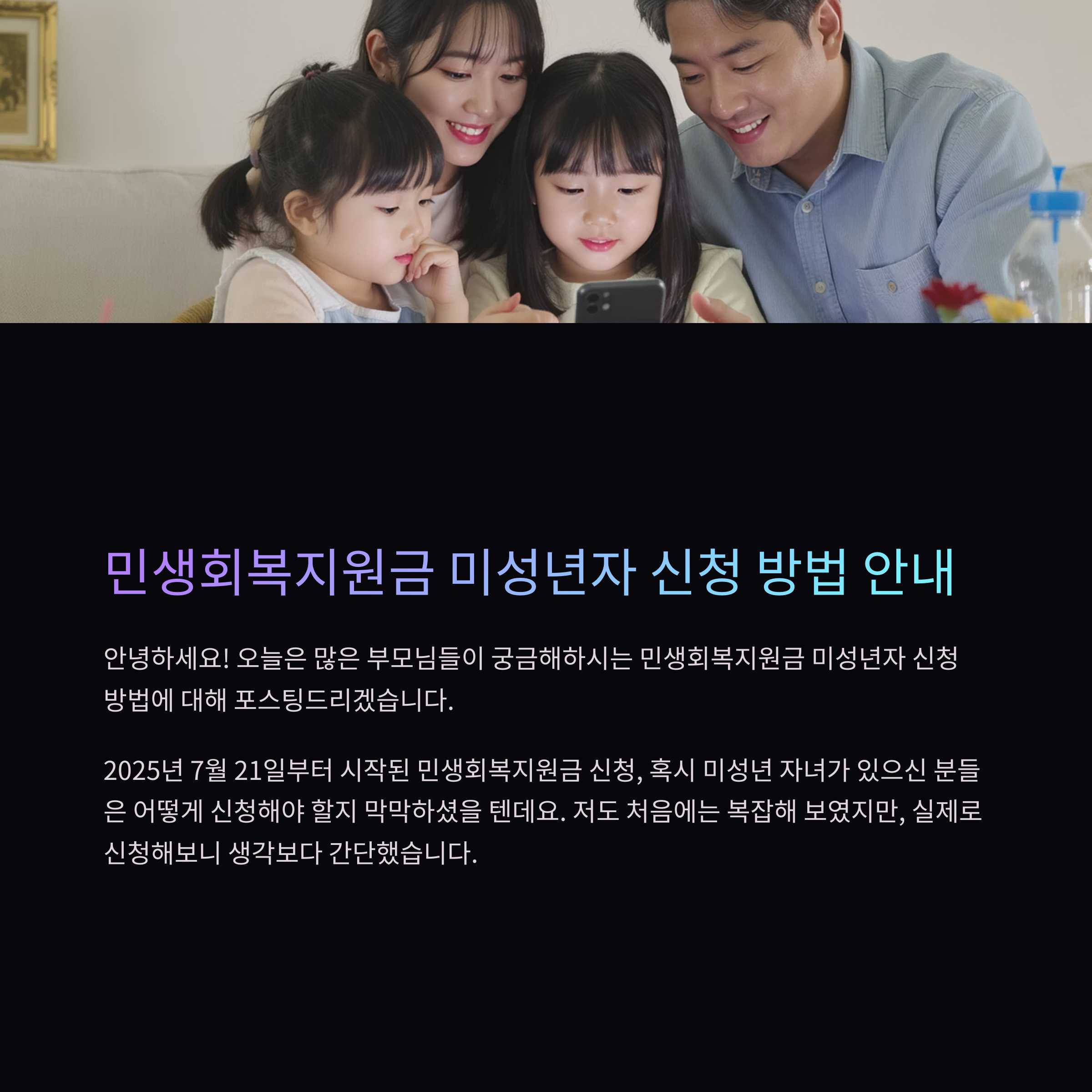 2025년 7월 21일부터 시작된 민생회복지원금 신청, 혹시 미성년 자녀가 있으신 분들은 어떻게 신청해야 할지 막막하셨을 텐데요. 저도 처음에는 복잡해 보였지만, 실제로 신청해보니 생각보다 간단했습니다.