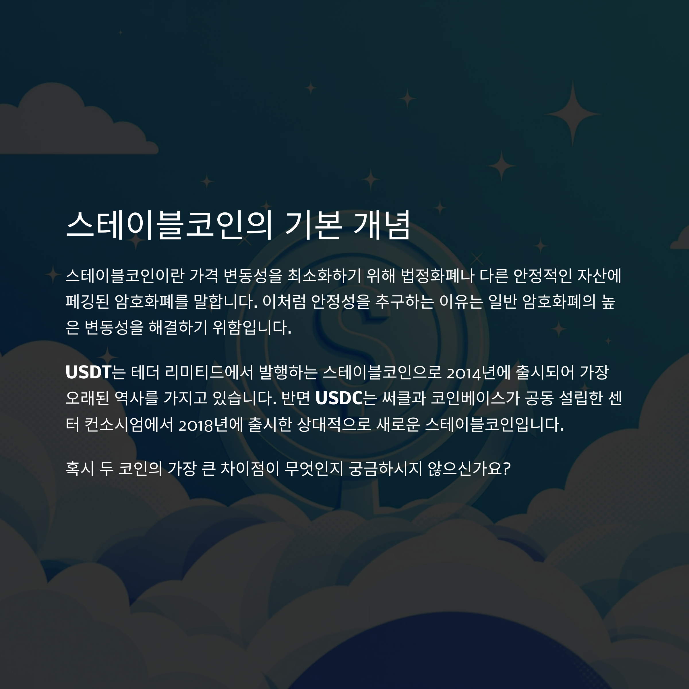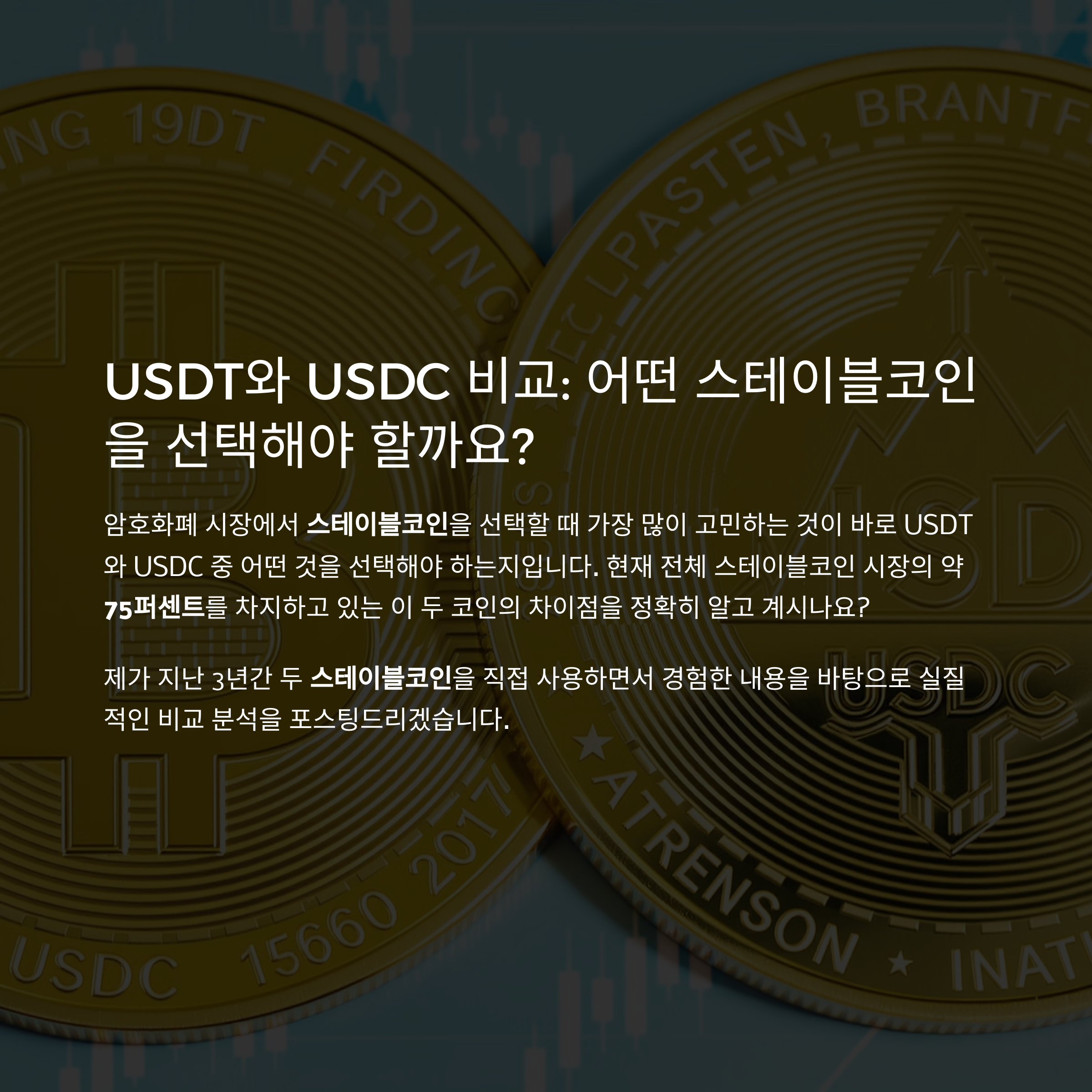 암호화폐 시장에서 스테이블코인을 선택할 때 가장 많이 고민하는 것이 바로 USDT와 USDC 중 어떤 것을 선택해야 하는지입니다. 현재 전체 스테이블코인 시장의 약 75퍼센트를 차지하고 있는 이 두 코인의 차이점을 정확히 알고 계시나요?