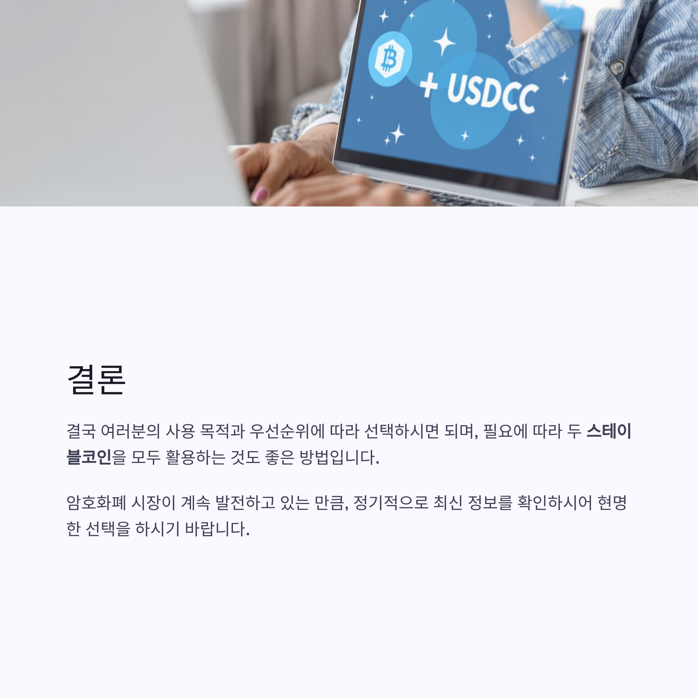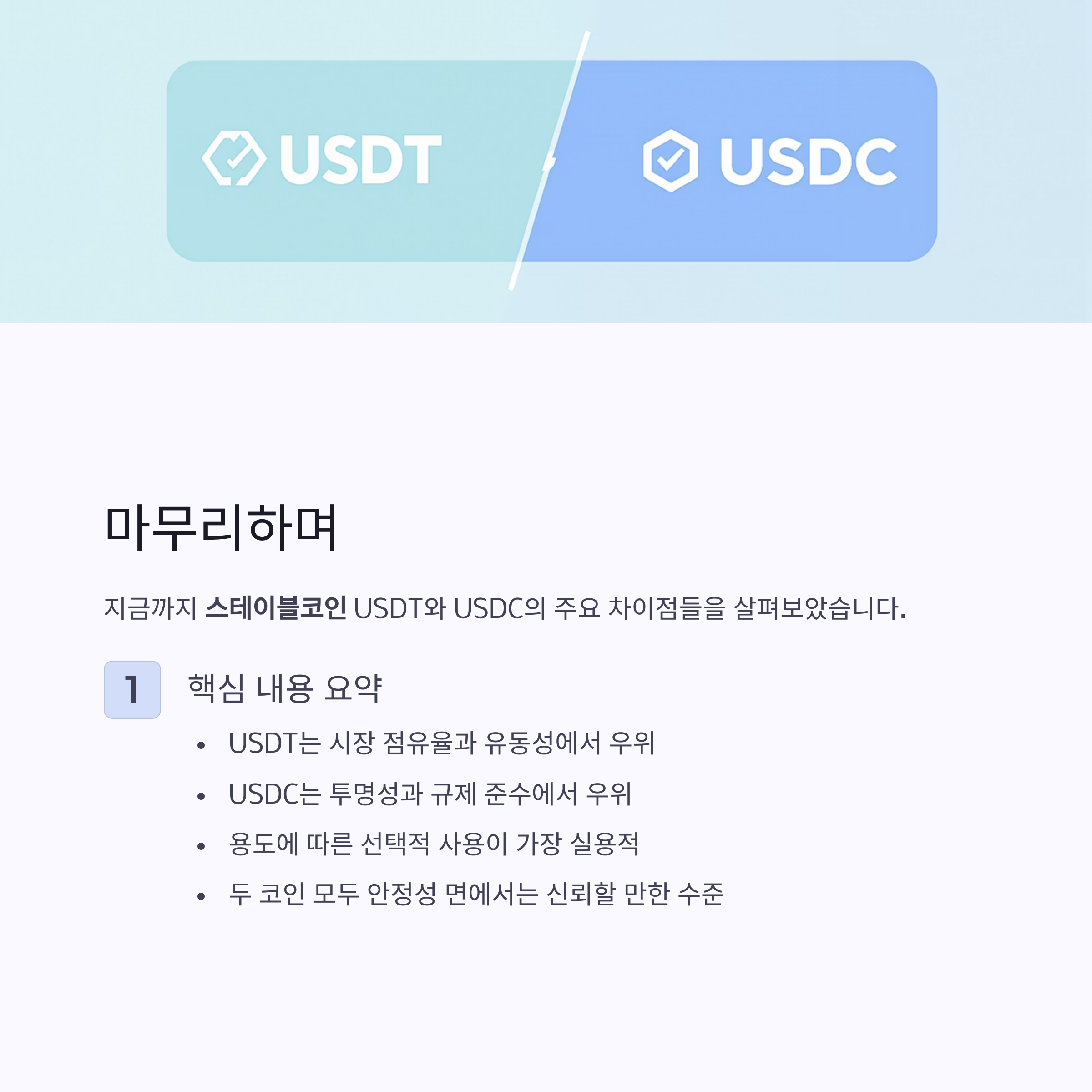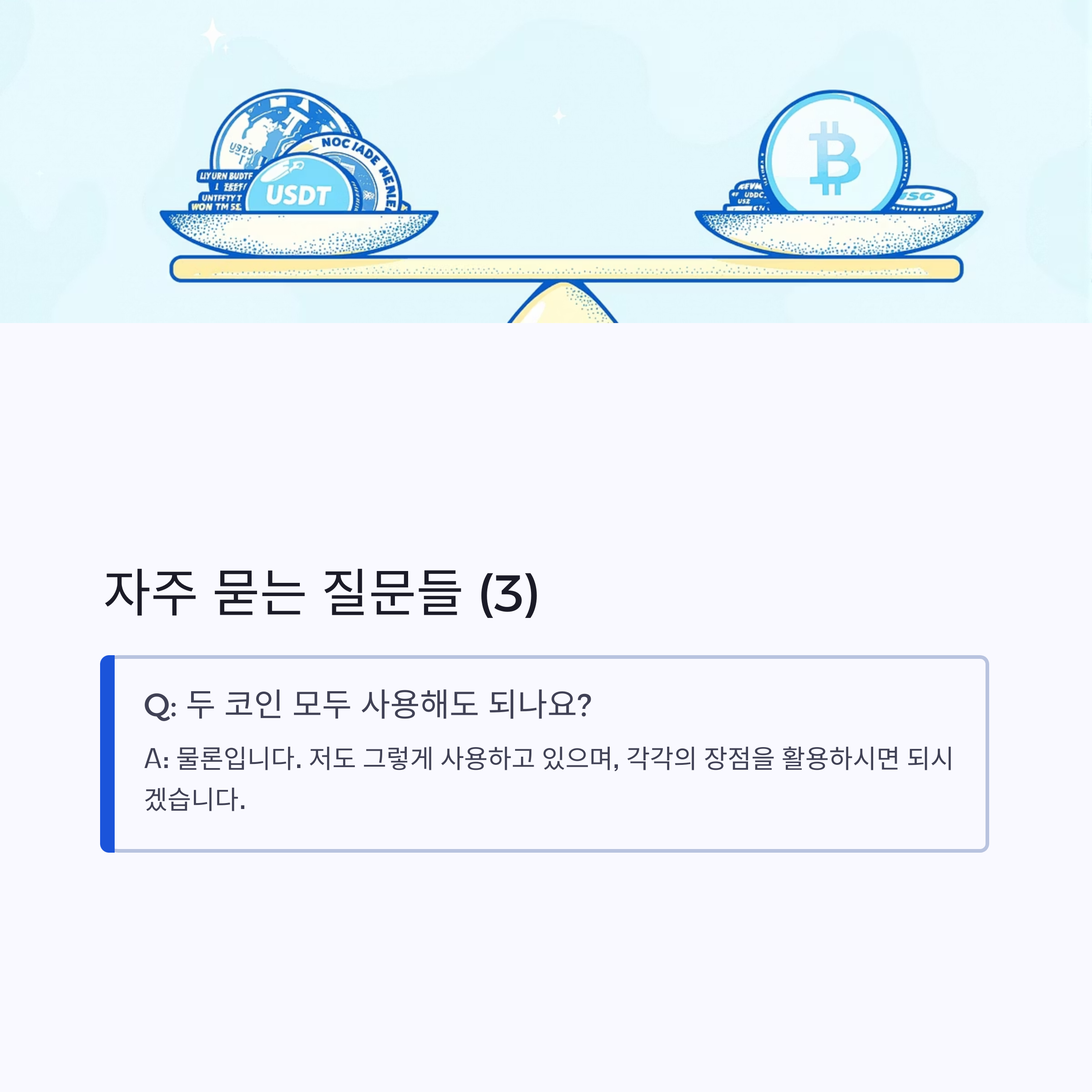 결국 여러분의 사용 목적과 우선순위에 따라 선택하시면 되며, 필요에 따라 두 스테이블코인을 모두 활용하는 것도 좋은 방법입니다.