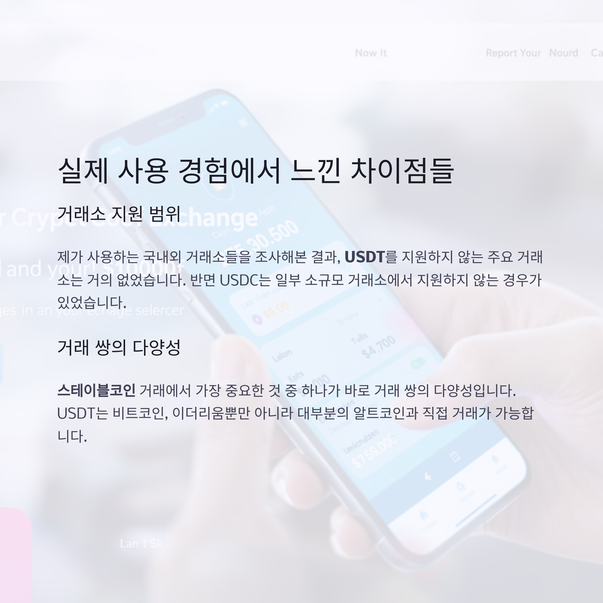 제가 사용하는 국내외 거래소들을 조사해본 결과, USDT를 지원하지 않는 주요 거래소는 거의 없었습니다. 반면 USDC는 일부 소규모 거래소에서 지원하지 않는 경우가 있었습니다.