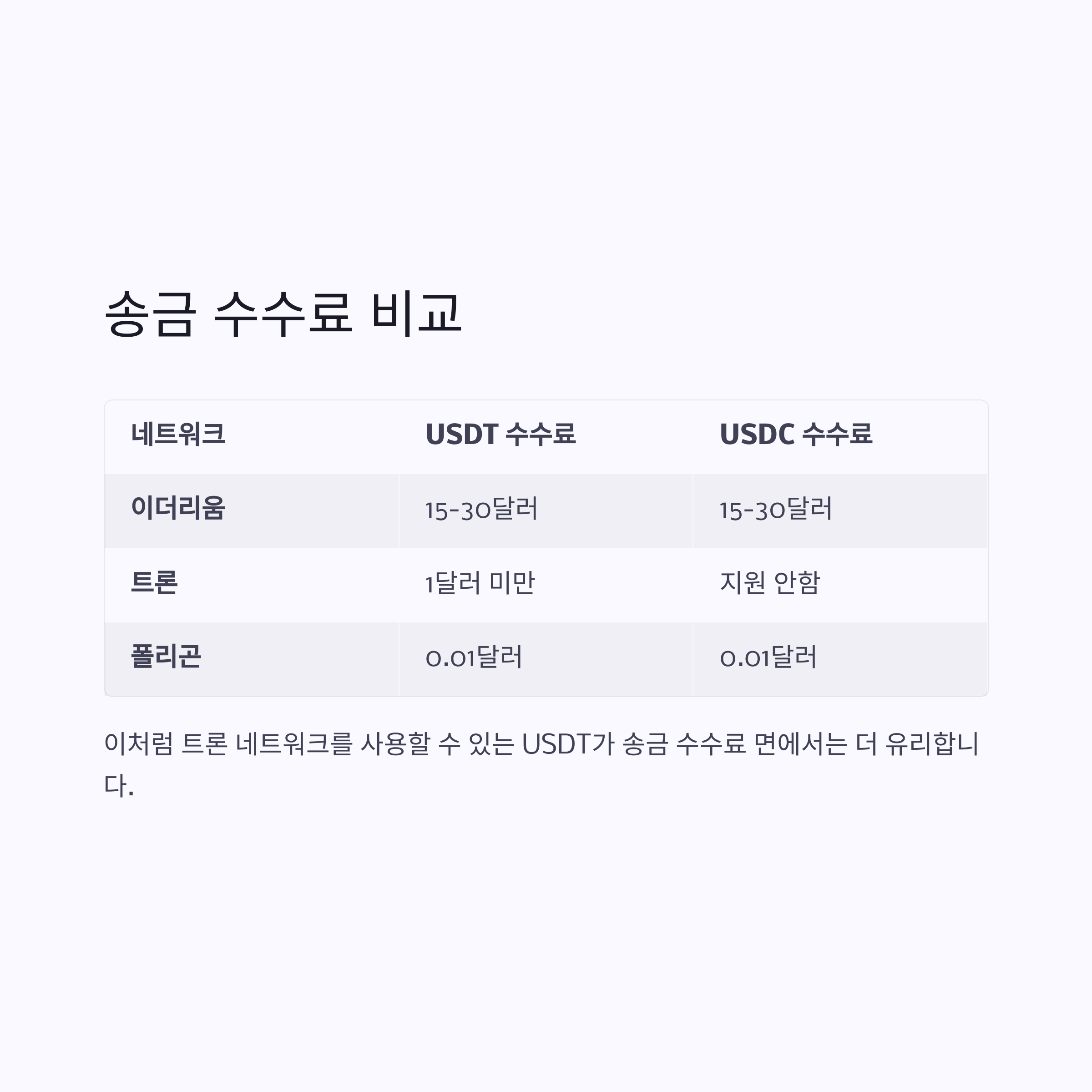 | 네트워크 | USDT 수수료 | USDC 수수료 |