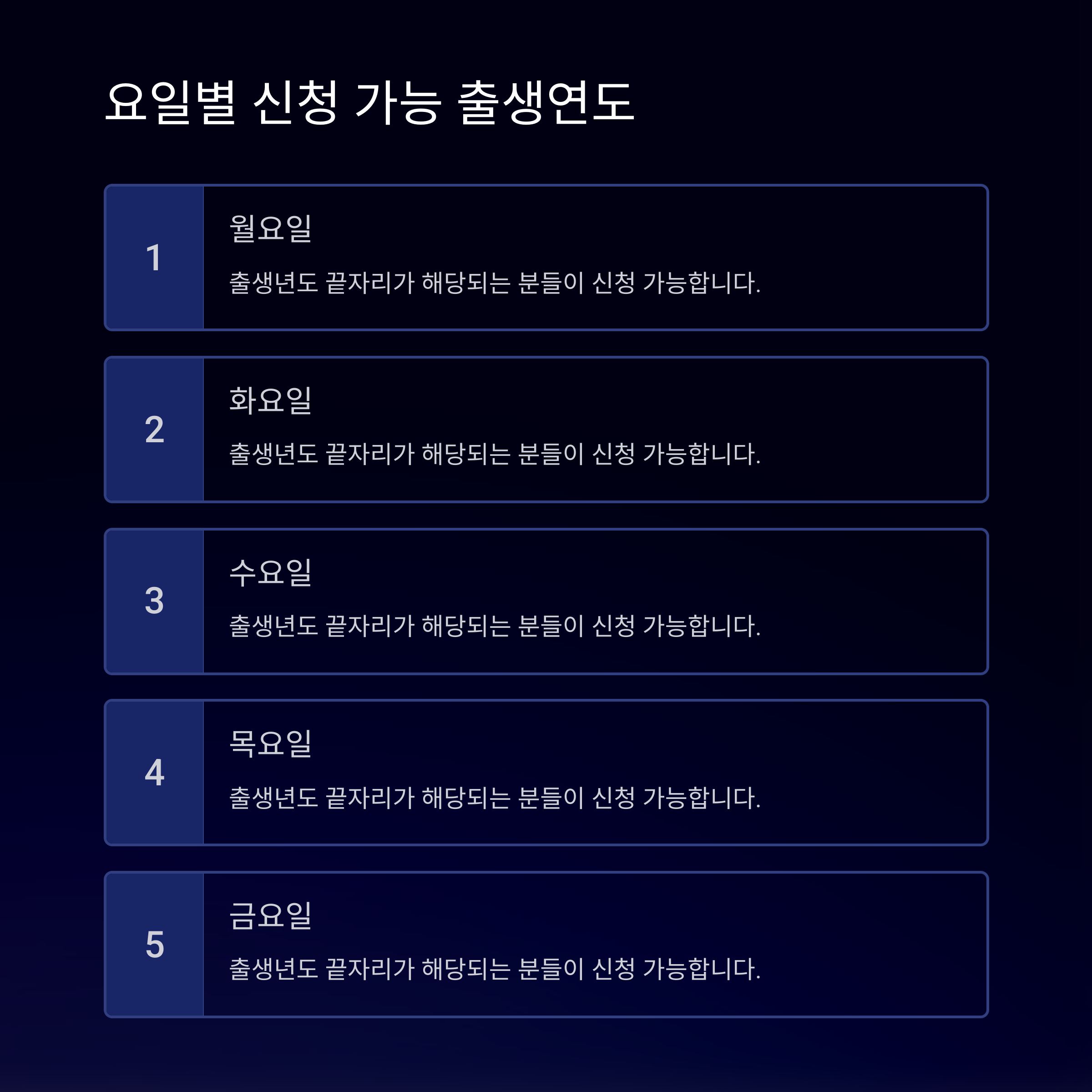 민생회복지원금은 출생연도 끝자리를 기준으로 요일별 신청이 가능합니다1:
