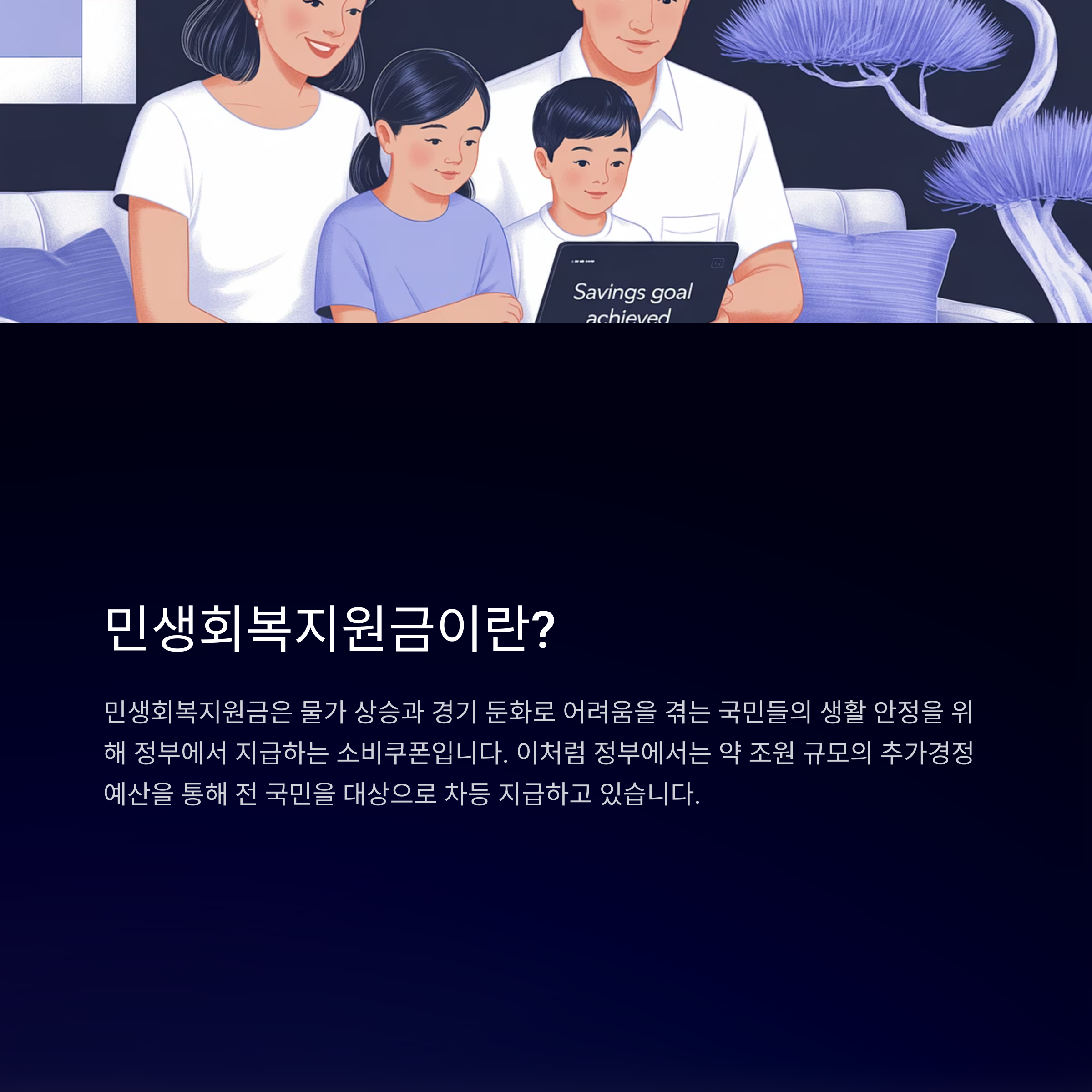 민생회복지원금은 물가 상승과 경기 둔화로 어려움을 겪는 국민들의 생활 안정을 위해 정부에서 지급하는 소비쿠폰입니다1. 이처럼 정부에서는 약 35조원 규모의 추가경정예산을 통해 전 국민을 대상으로 차등 지급하고 있습니다