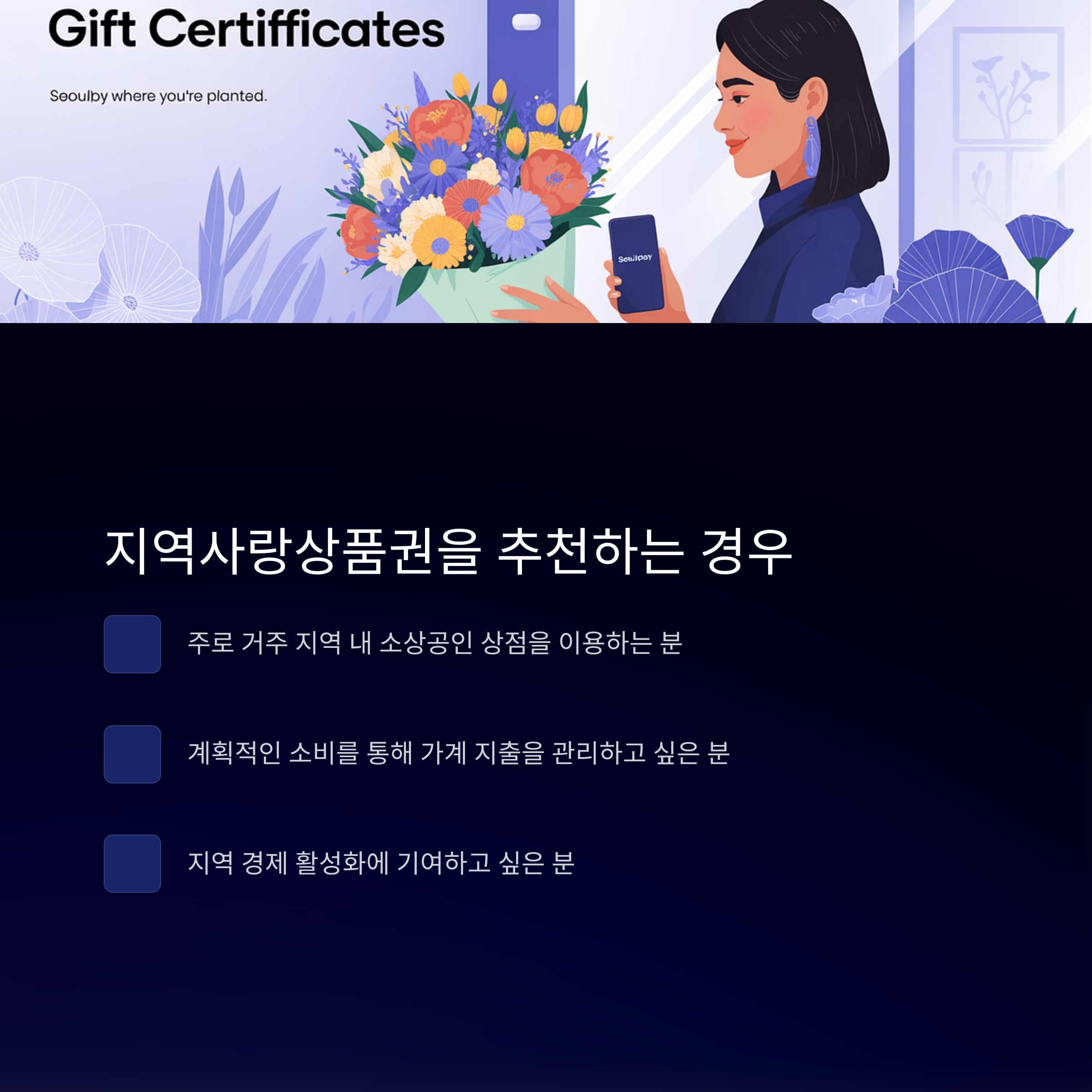| 모바일 지역사랑상품권 | 앱으로 즉시 발급 실시간 잔액 확인 QR 간편 결제 |