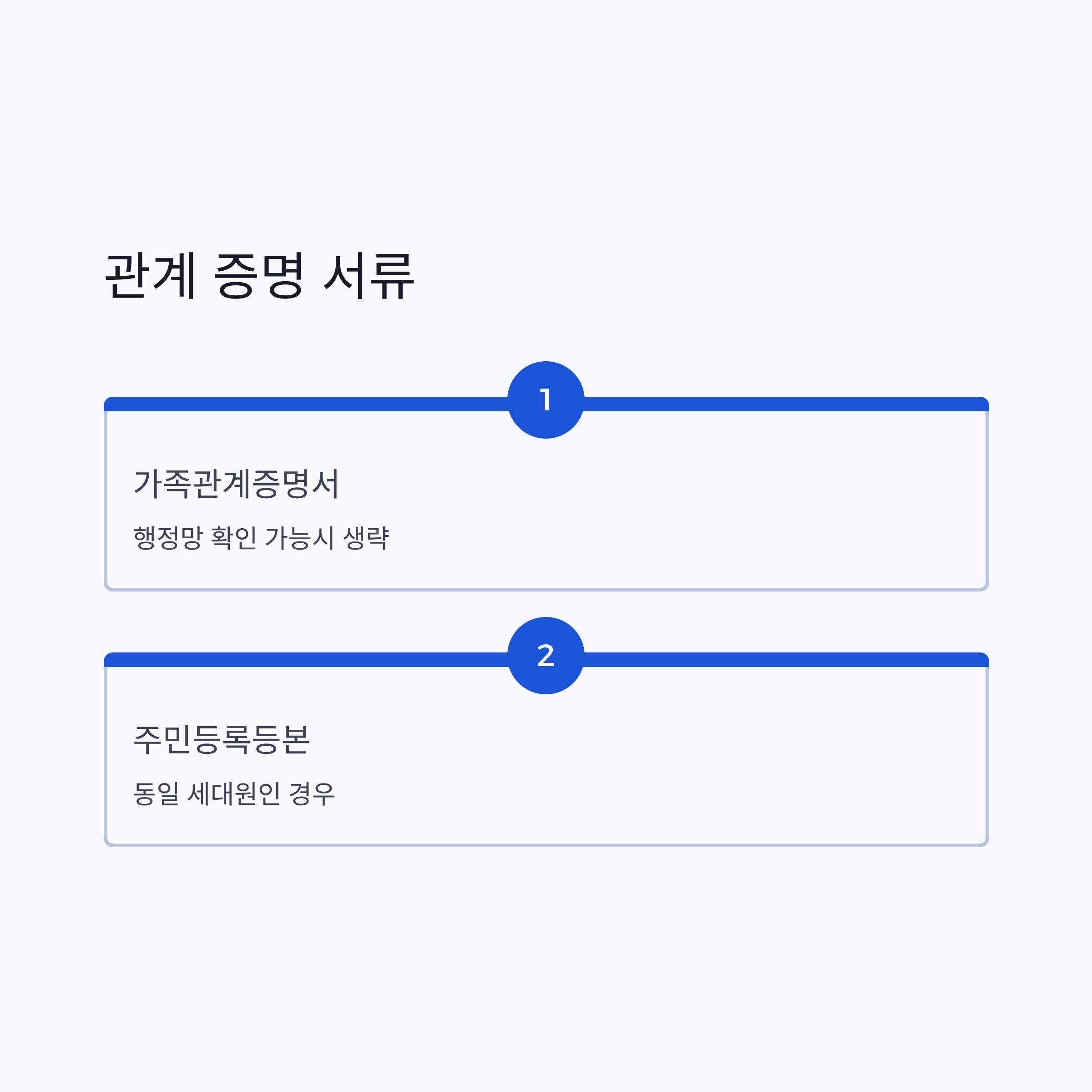 | 관계증명 | 가족관계증명서 | 행정망 확인 가능시 생략 |