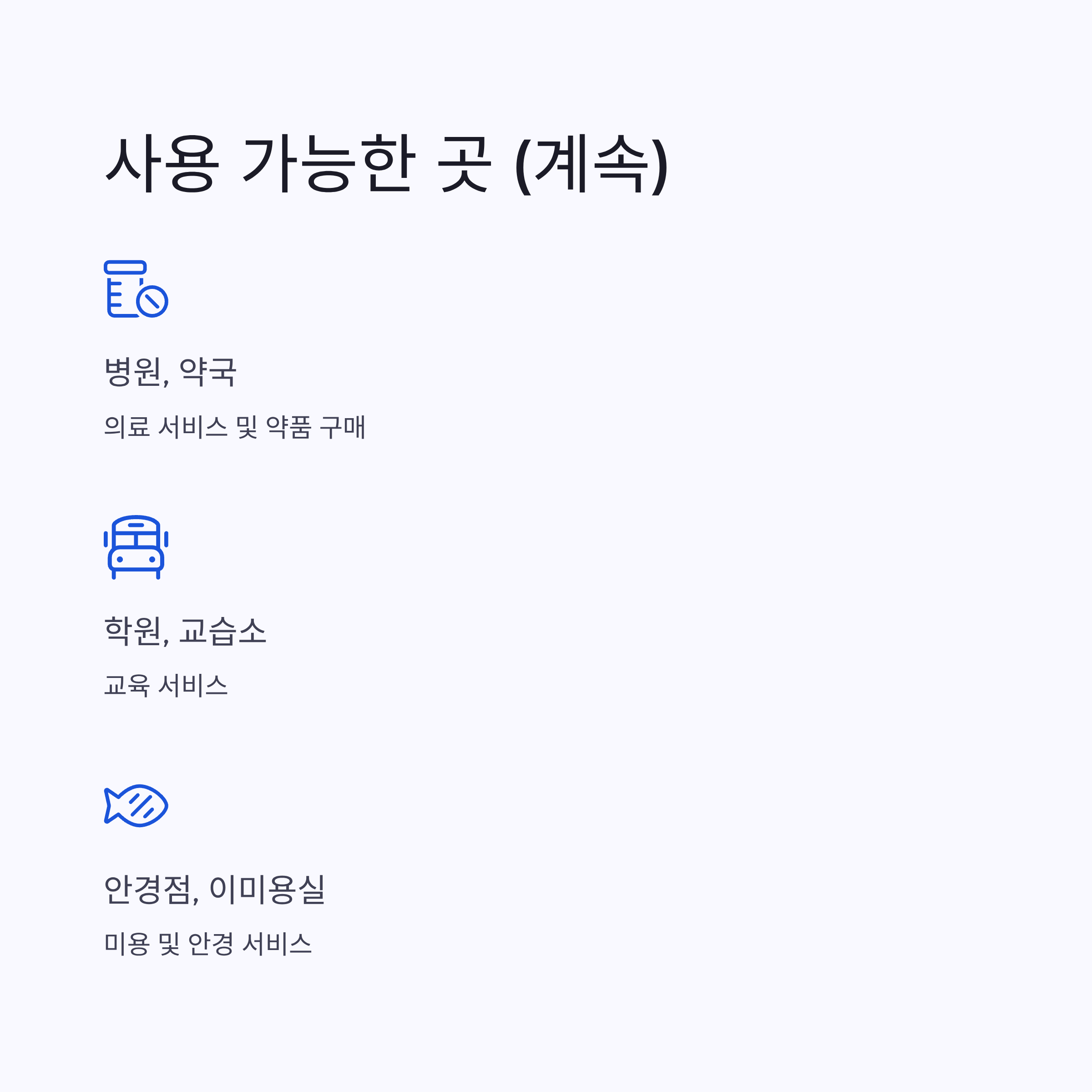 중요한 점은 본인의 주소지 관할 지역에서만 사용 가능하다는 것입니다. 서울에 거주하시면 서울에서, 부산에 거주하시면 부산에서만 사용하실 수 있습니다.