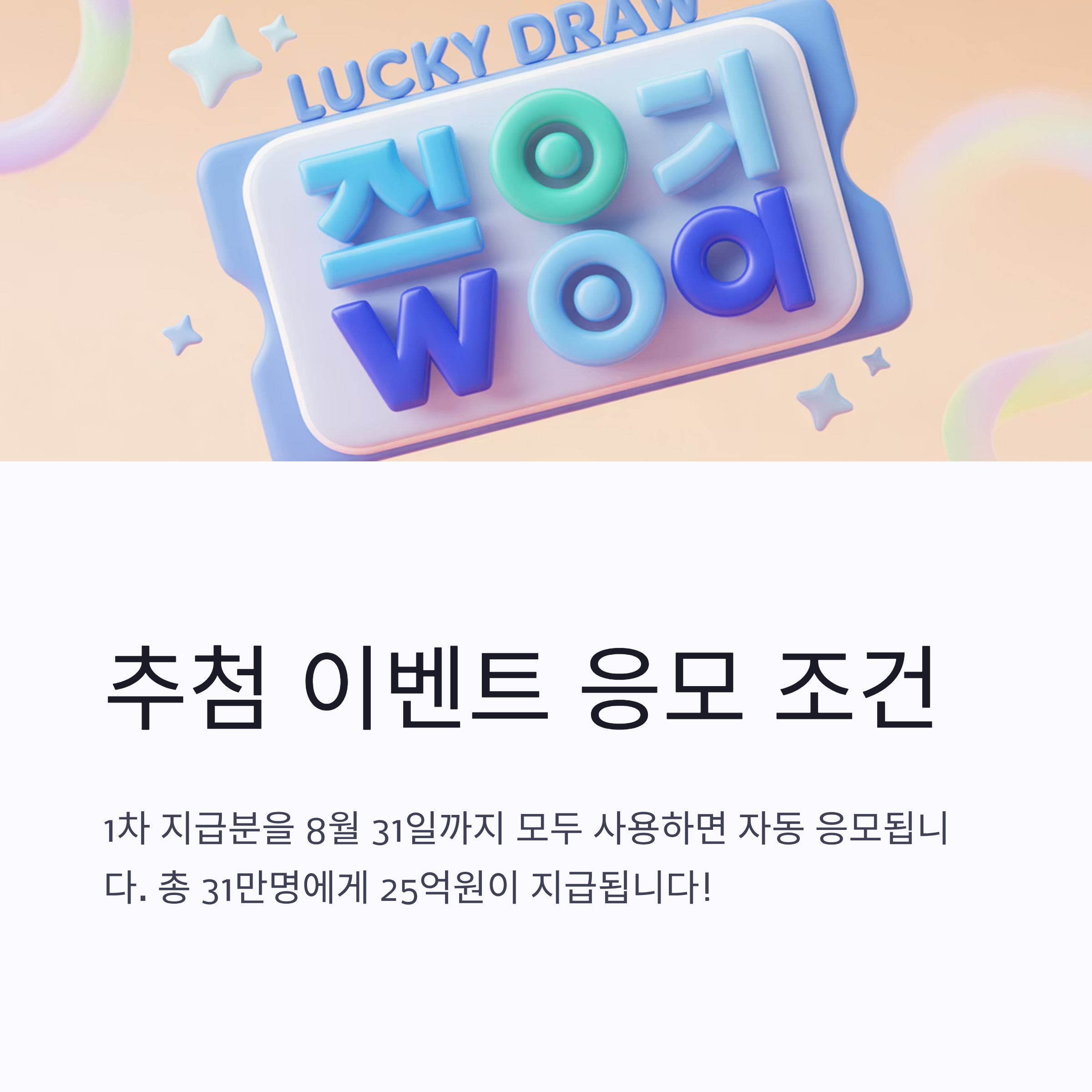 응모 조건: 1차 지급분을 8월 31일까지 모두 사용하면 자동 응모됩니다. 이처럼 단순히 신청만 하는 것이 아니라 실제로 사용해야 추가 혜택을 받을 수 있습니다.