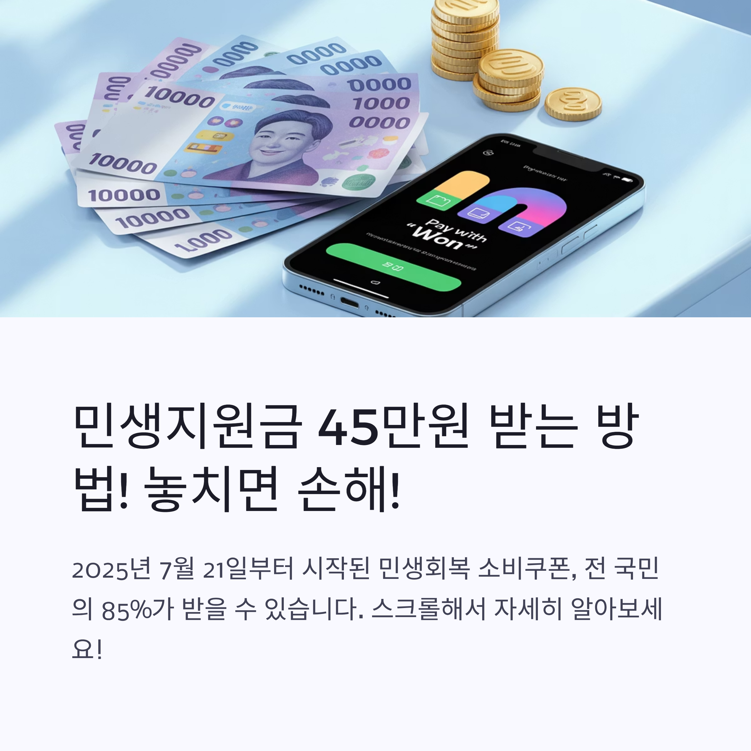 무엇보다 스미싱 사기에 주의하시고, 공식 채널을 통해서만 신청하시기 바랍니다. 여러분의 소중한 혜택을 안전하게 받아가세요!