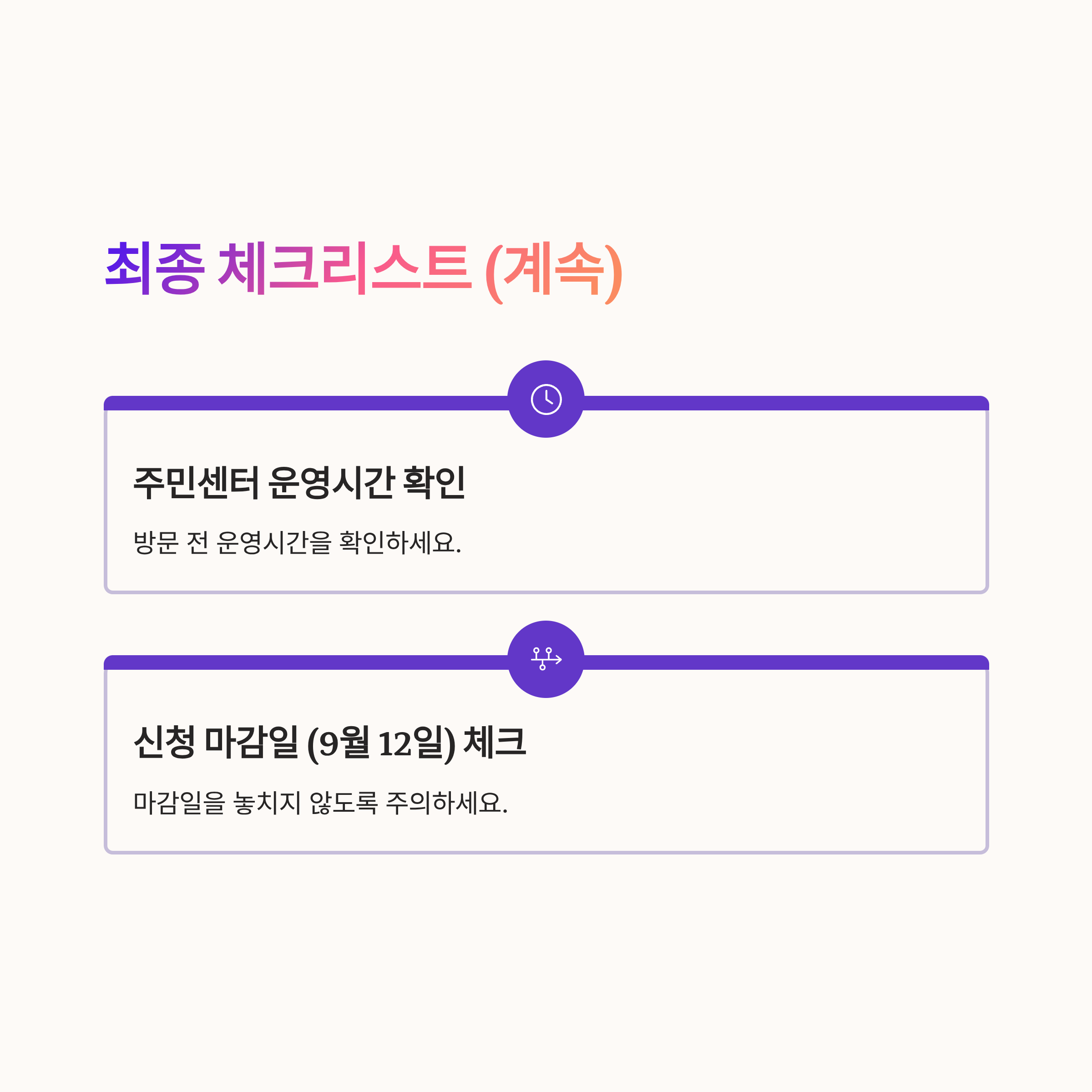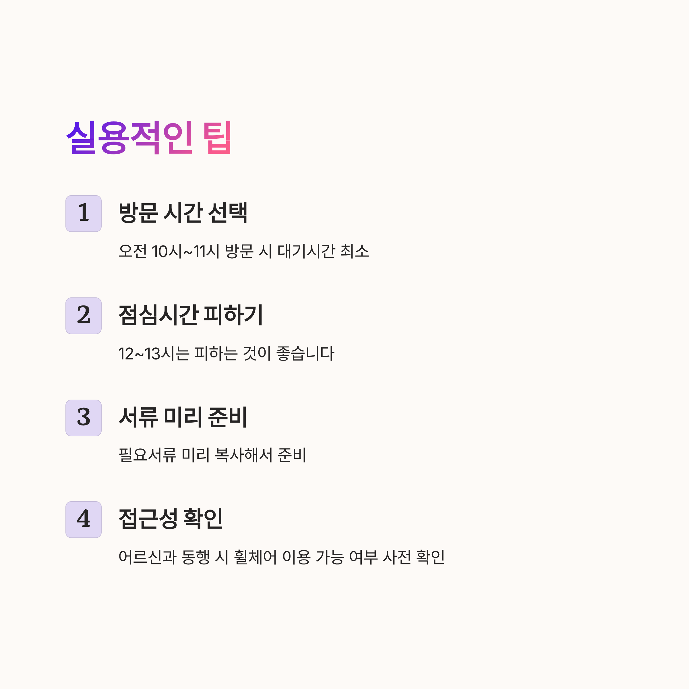 이처럼 단계별로 차근차근 준비하시면 누구나 쉽게 신청하실 수 있습니다. 특히 디지털에 익숙하지 않은 분들에게는 가장 안전하고 확실한 방법이라고 할 수 있겠습니다.