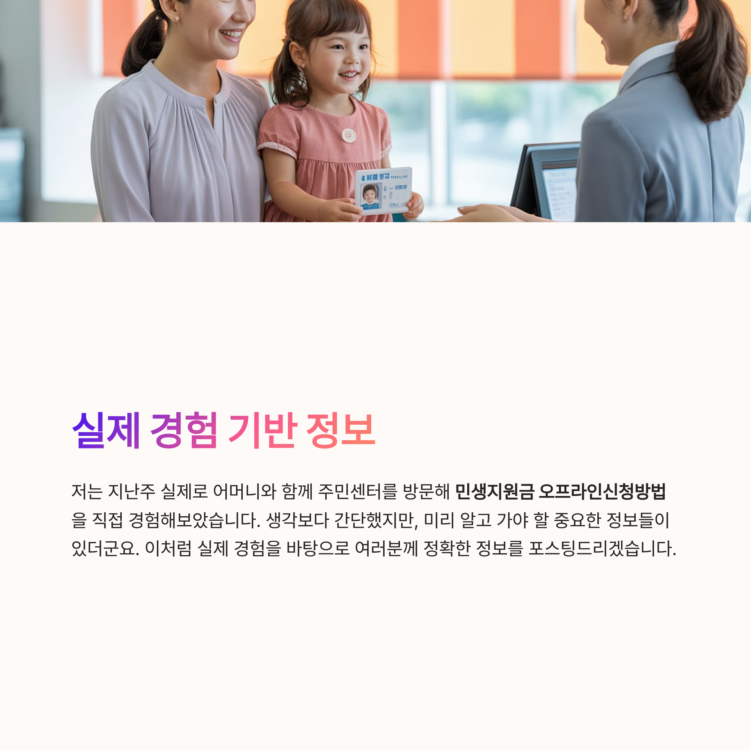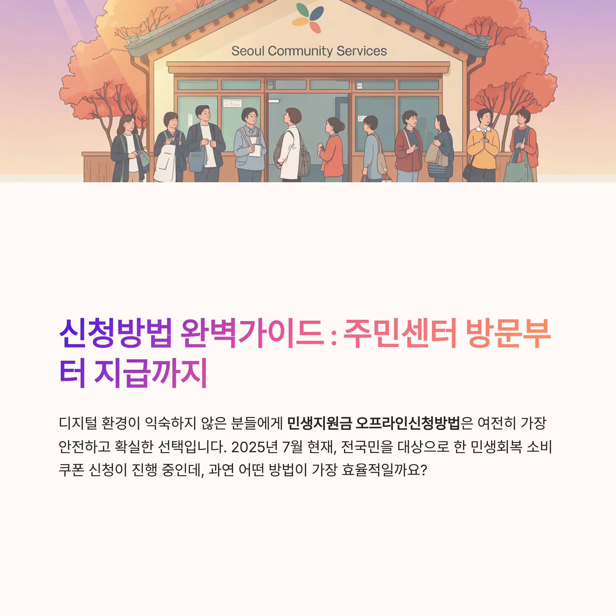 저는 지난주 실제로 어머니와 함께 주민센터를 방문해 민생지원금 오프라인신청방법을 직접 경험해보았습니다. 생각보다 간단했지만, 미리 알고 가야 할 중요한 정보들이 있더군요. 이처럼 실제 경험을 바탕으로 여러분께 정확한 정보를 포스팅드리겠습니다.