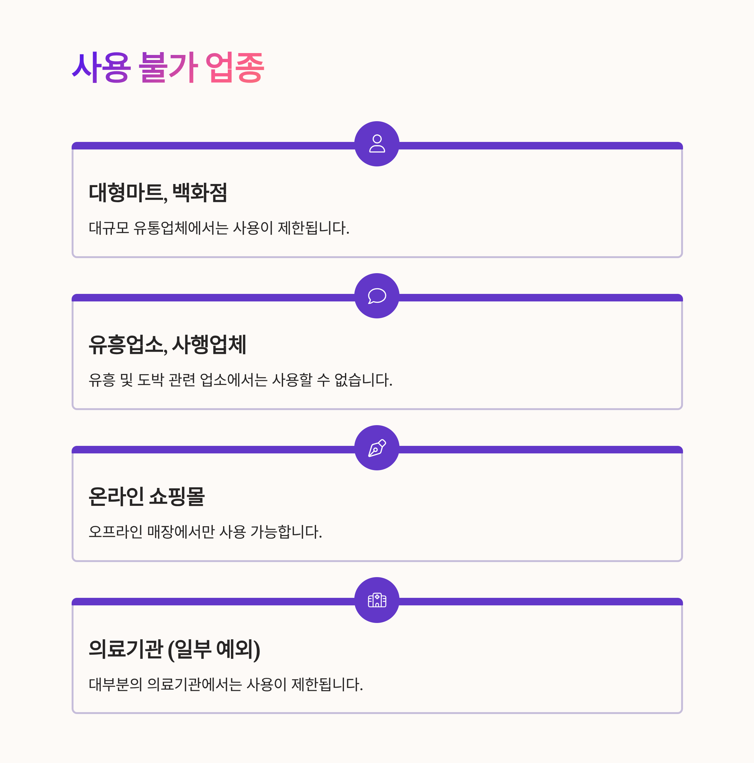 연 매출액 30억원 이하 매장이 대상이며, 전통시장, 동네마트, 식당, 미용실 등에서 이용하실 수 있습니다.