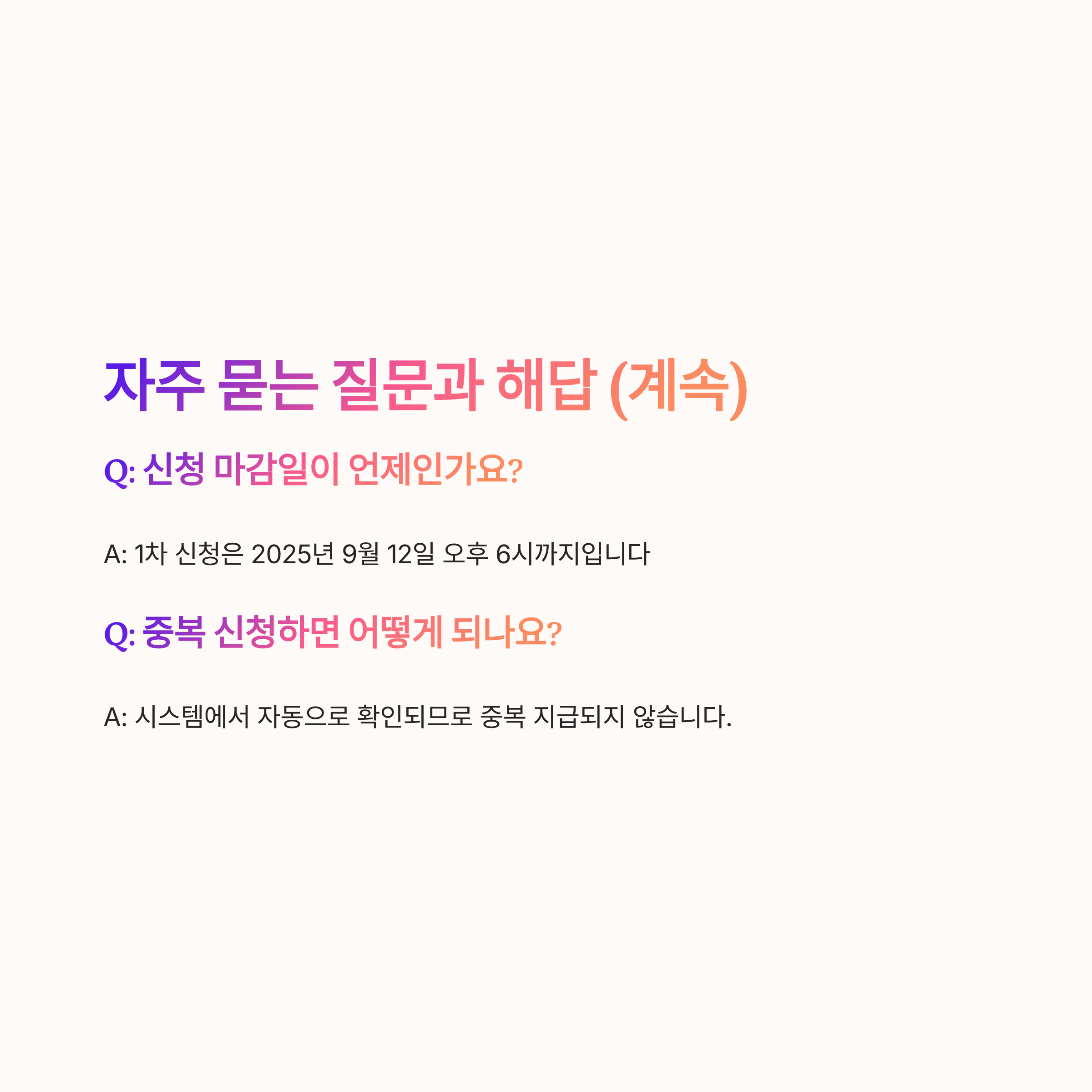 A: 1차 신청은 2025년 9월 12일 오후 6시까지입니다