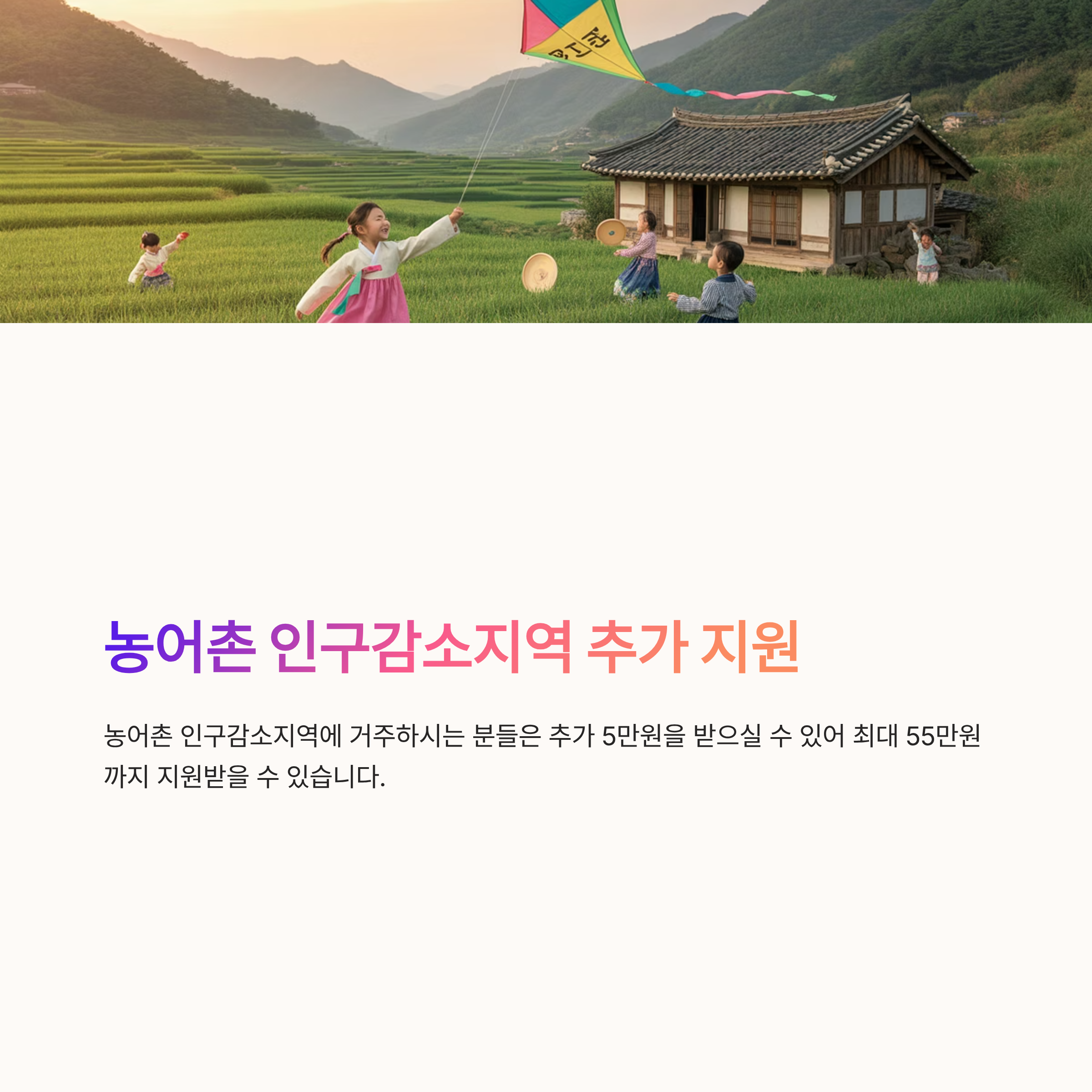 | 농어촌 인구감소지역 | 추가 5만원 | - | 최대 55만원 |