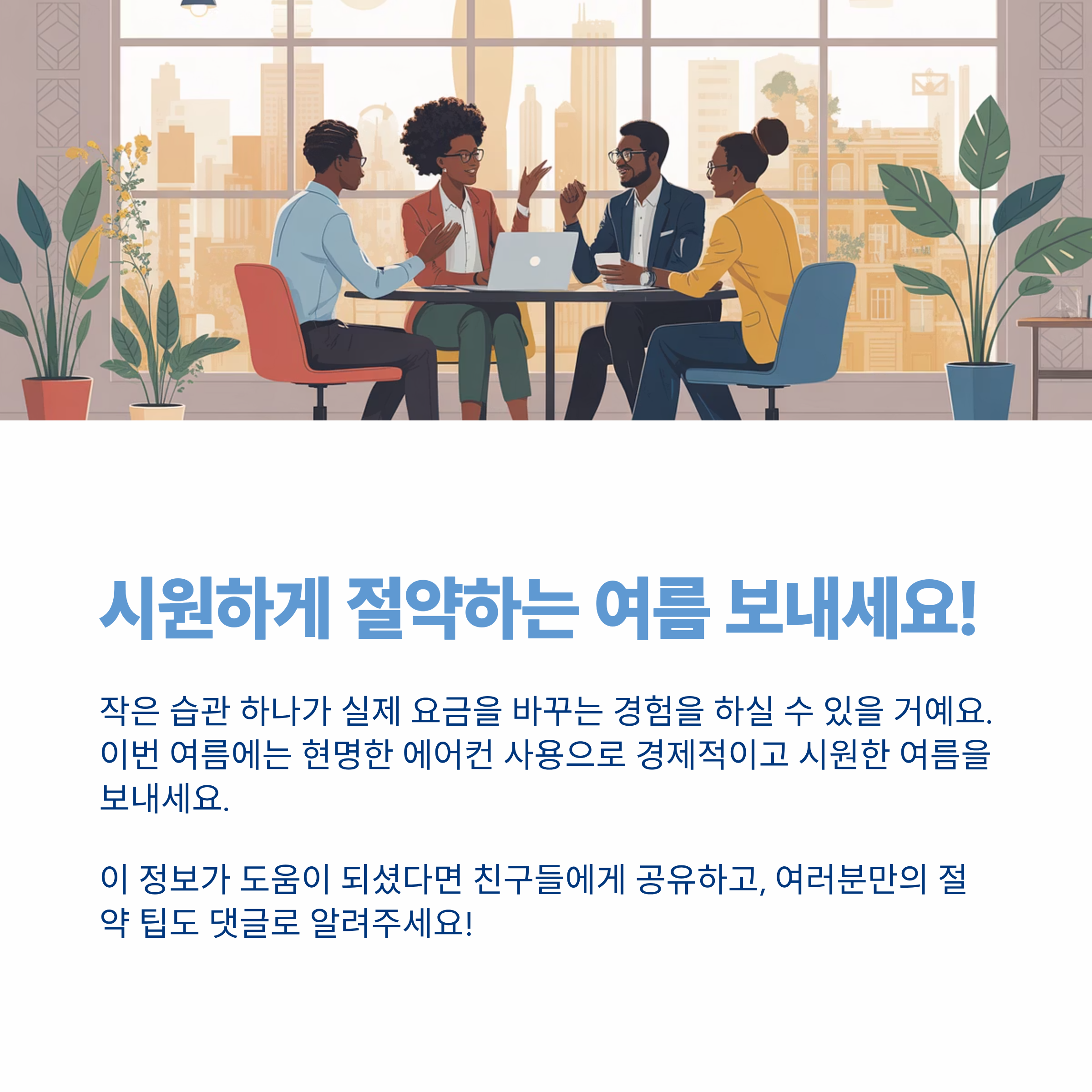 여러분도 이번 여름에는 현명한 에어컨 요금 절약 방법으로 경제적이고 시원한 여름을 보내시길 바랍니다.