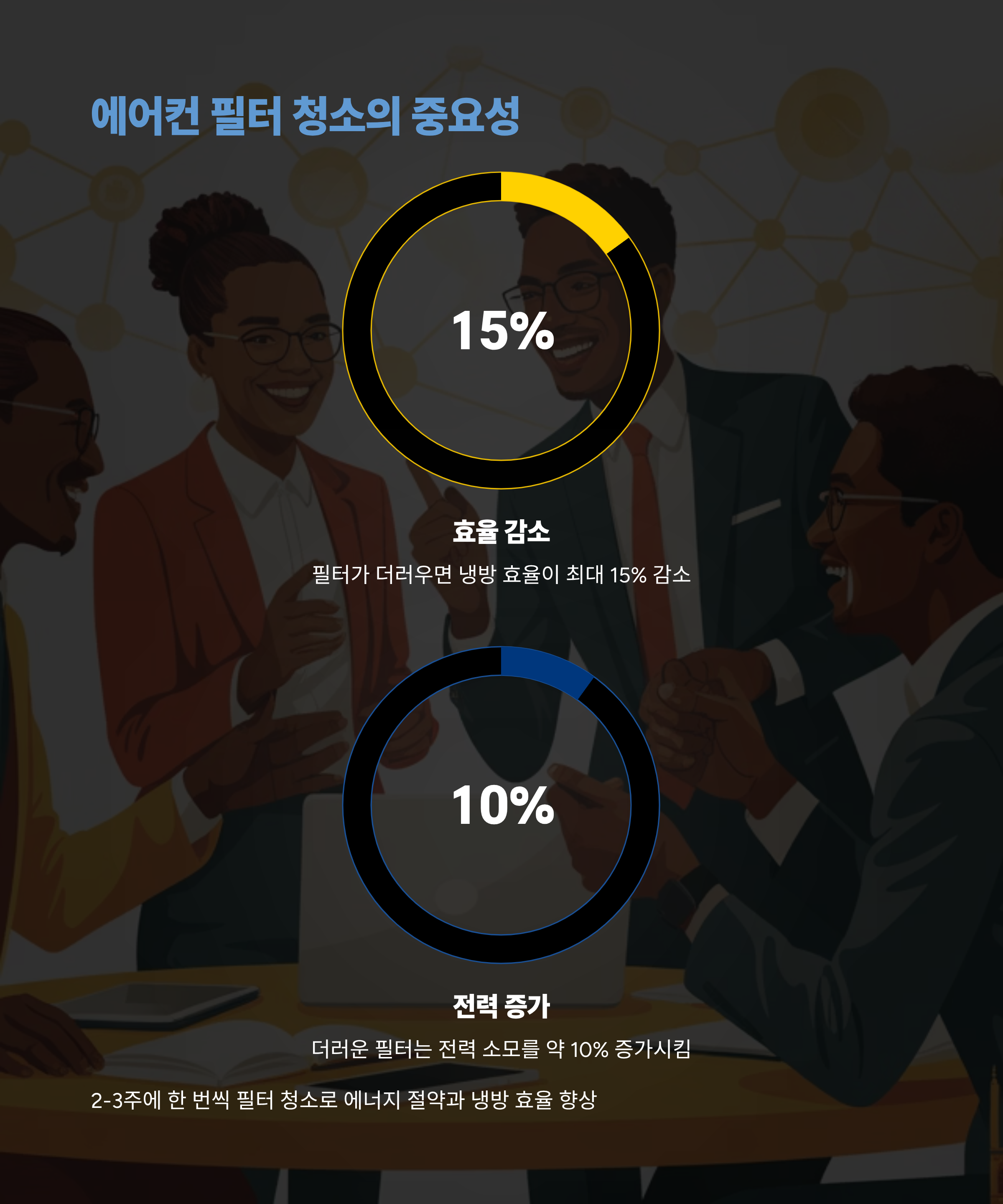 - 정기적인 필터 청소 - 2-3주마다 청소로 10-15% 효율 개선