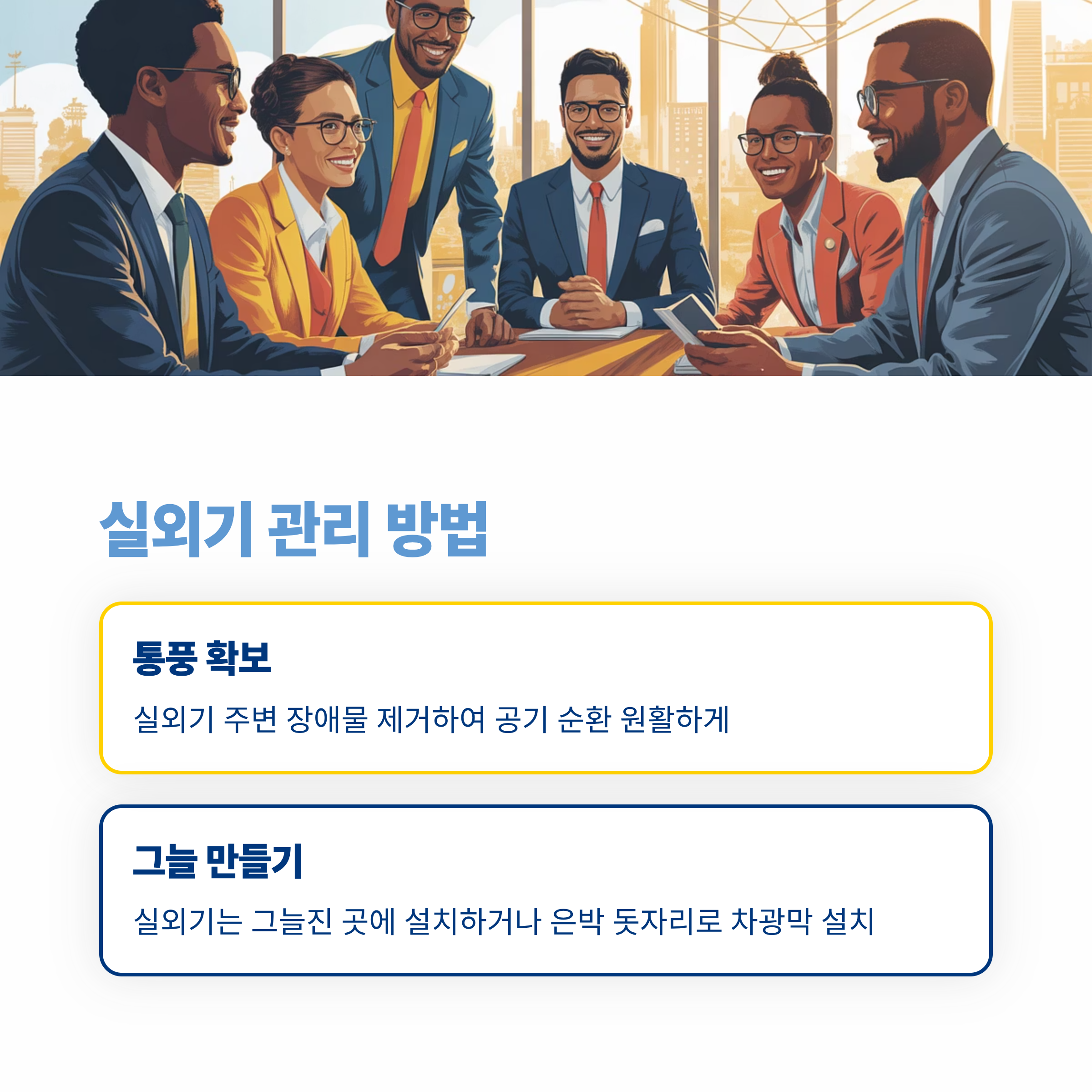 - 실외기 관리 - 통풍 확보와 차광으로 성능 최적화