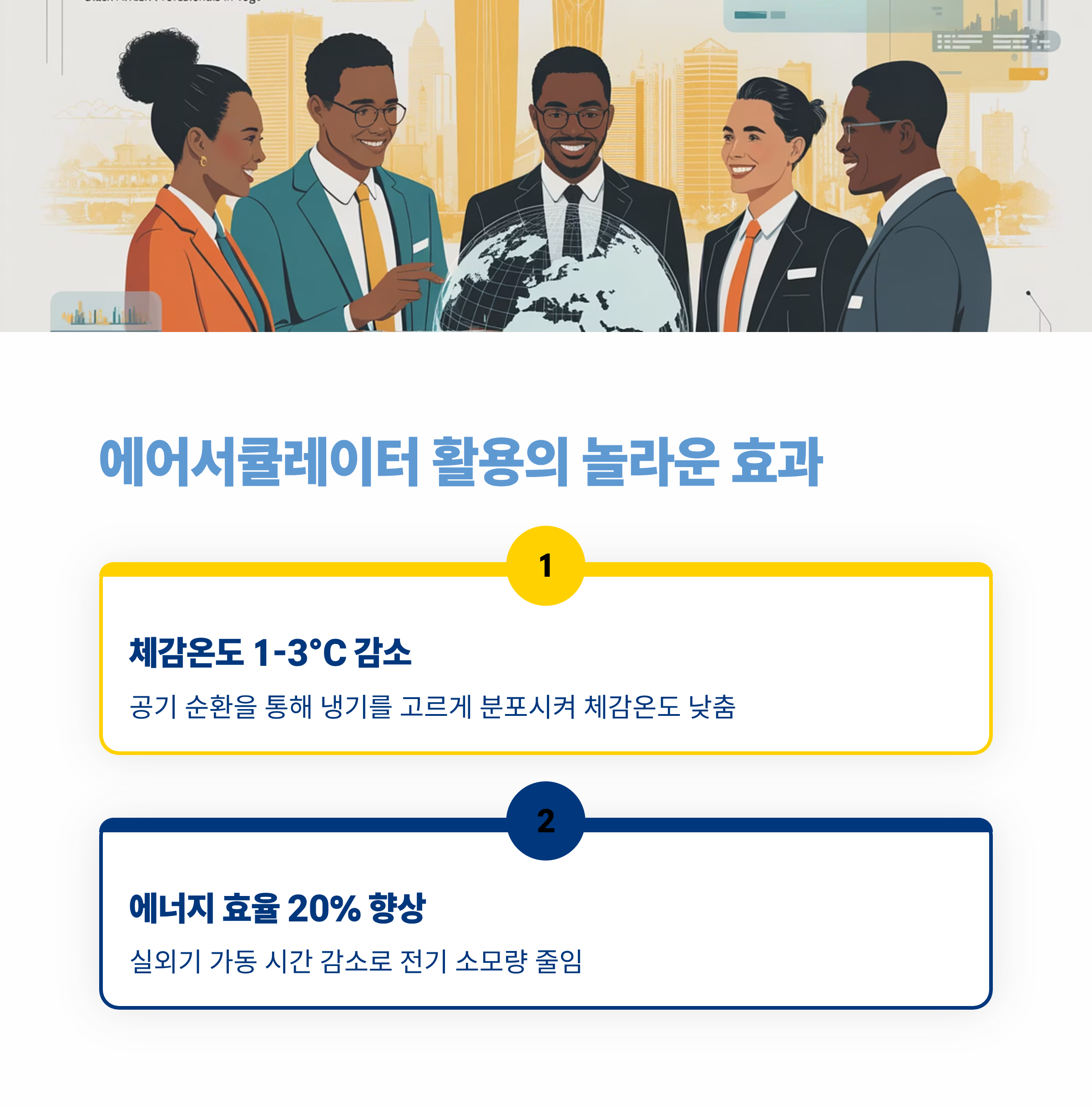 에어서큘레이터는 일반 선풍기보다 공기 순환이 더 원활해서 방 온도를 약 1-3도 낮추고, 에너지 효율이 20%나 절약됩니다