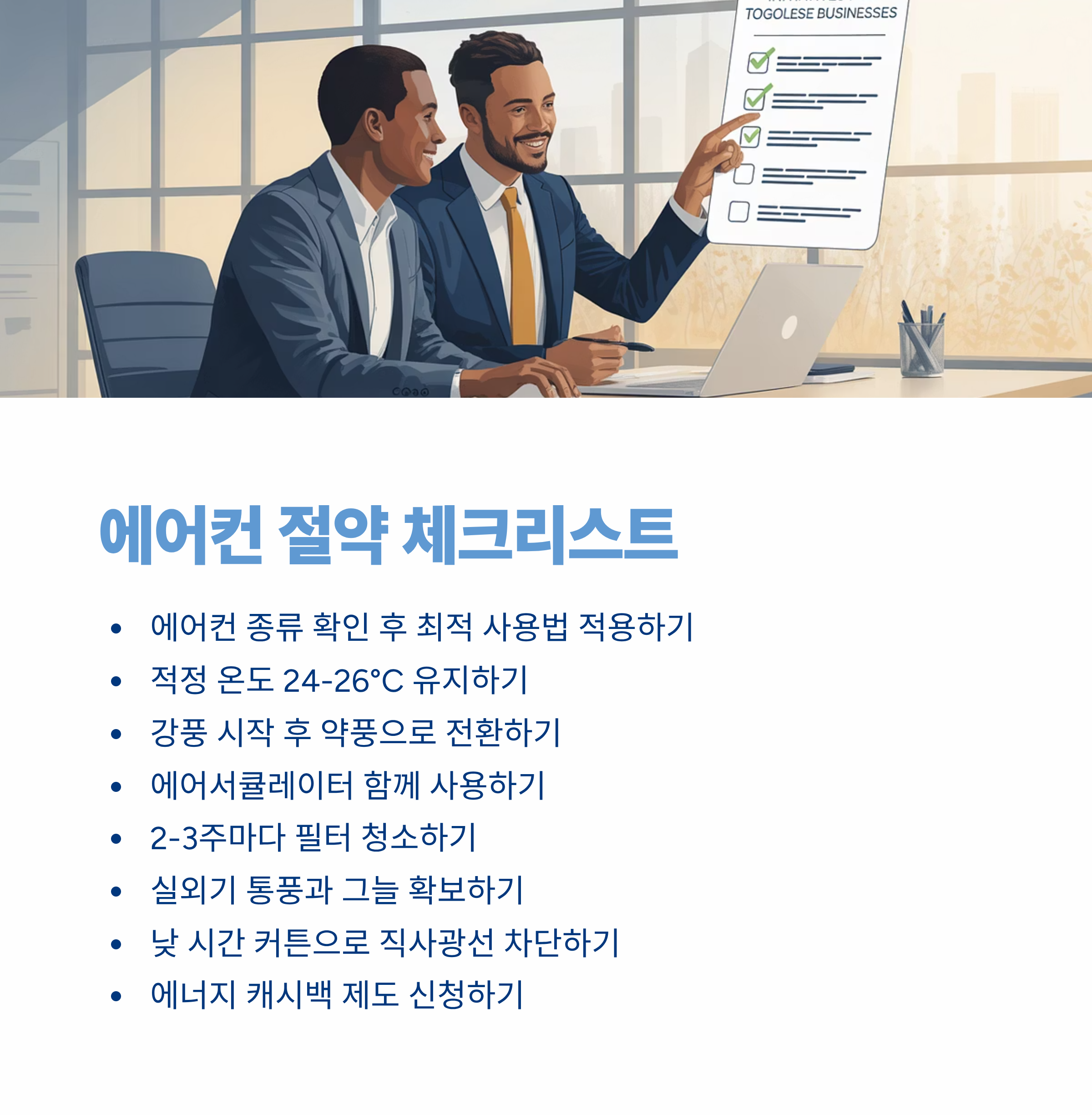 오늘 소개해드린 에어컨 요금 절약 방법들을 정리해보면 다음과 같습니다:
