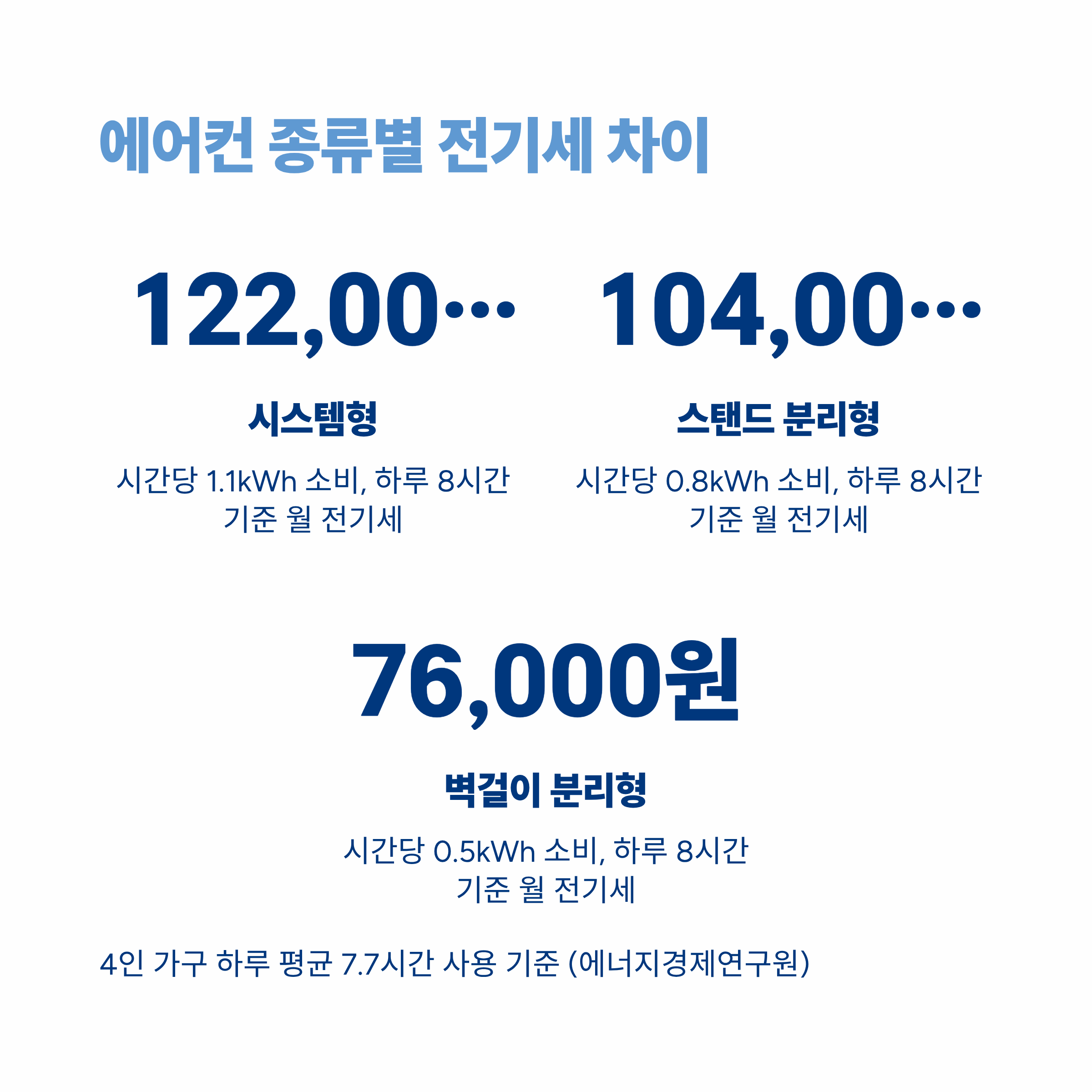 먼저 우리가 사용하는 에어컨의 종류에 따라 전기세가 얼마나 차이 나는지 살펴보겠습니다.