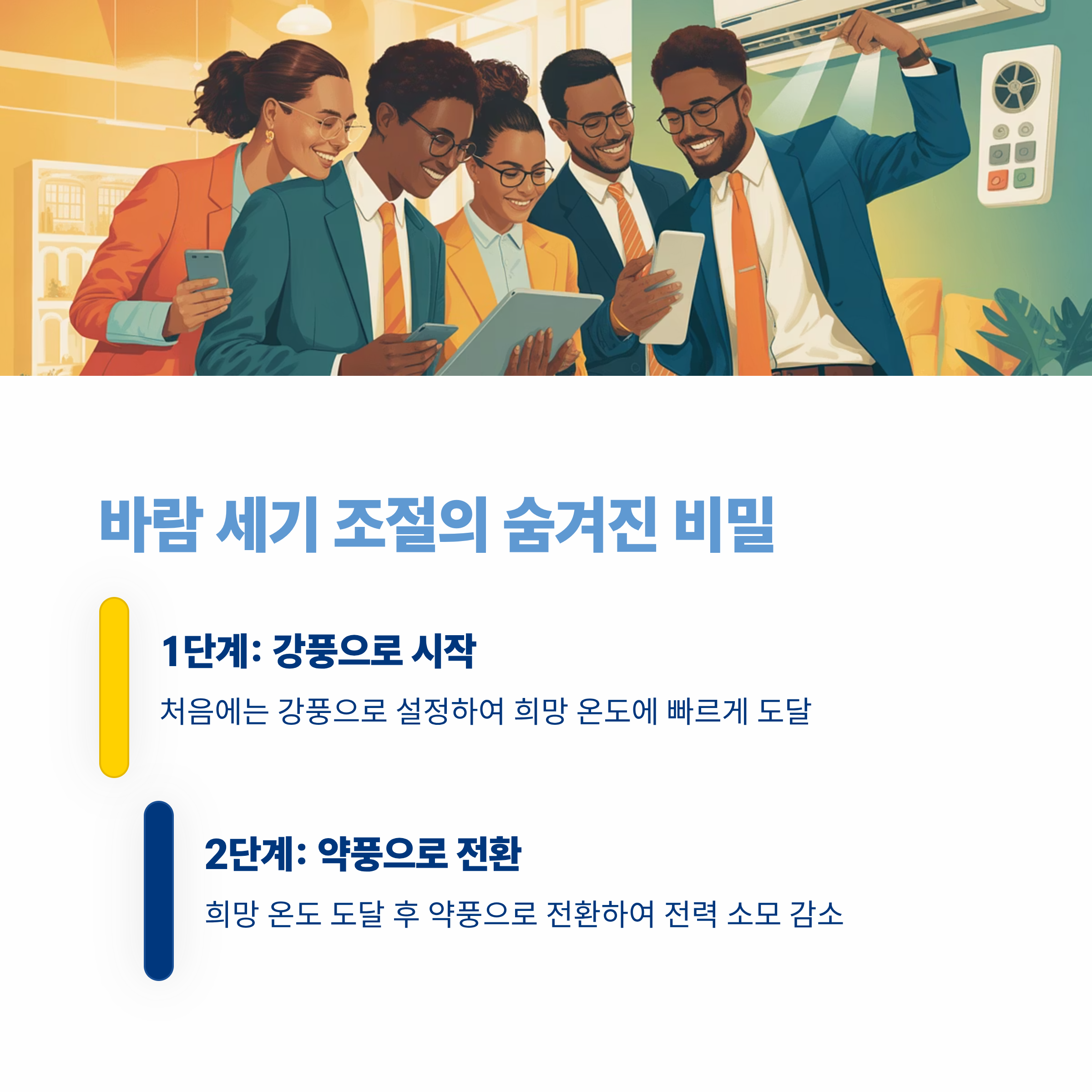 많은 분들이 모르는 사실이 있습니다. 에어컨을 처음 켤 때는 강풍으로 시작해서 서서히 줄이는 것이 전기세 절약에 도움이 됩니다