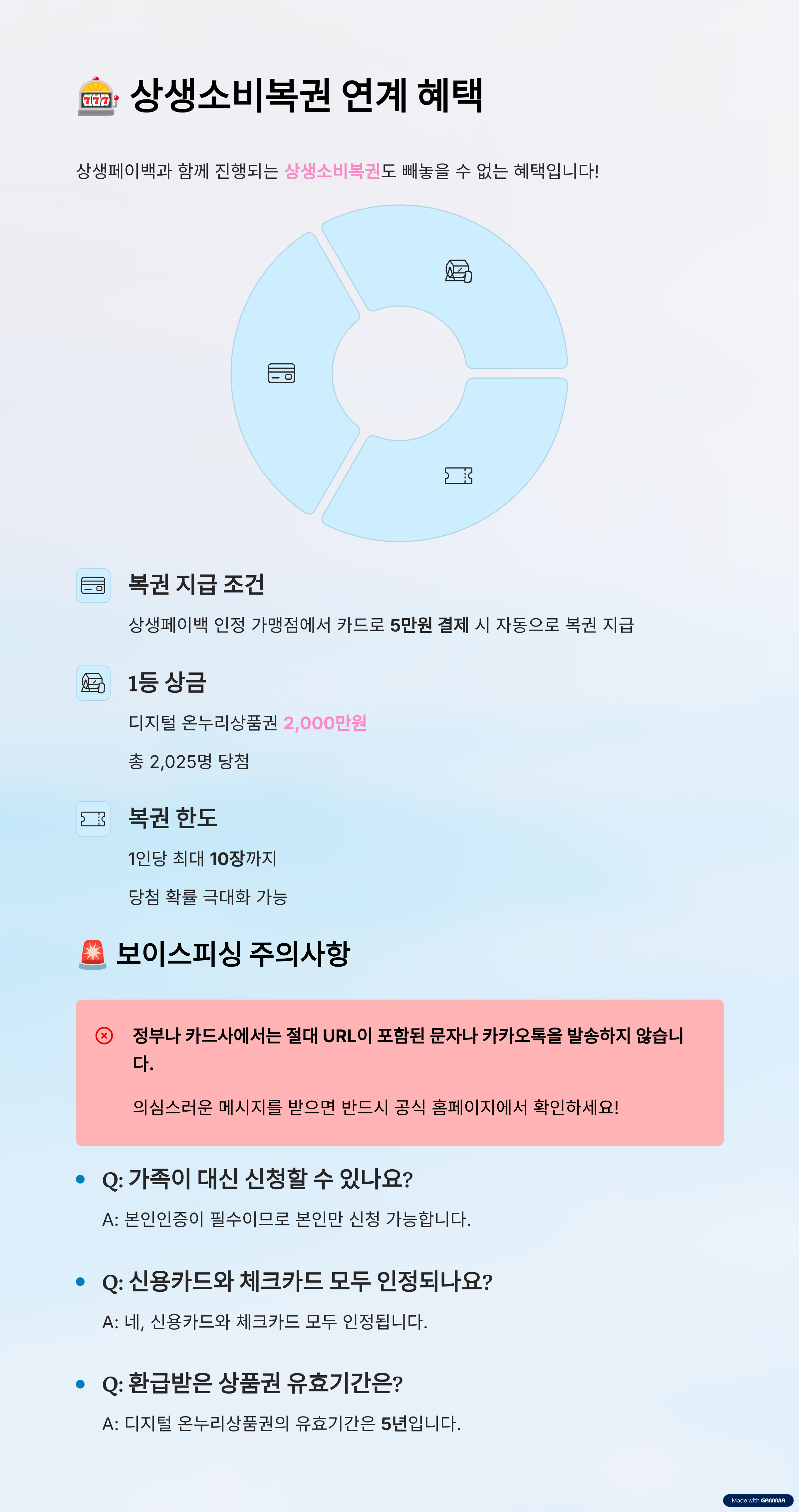 상생페이백과 함께 진행되는 상생소비복권도 빼놓을 수 없는 혜택입니다.